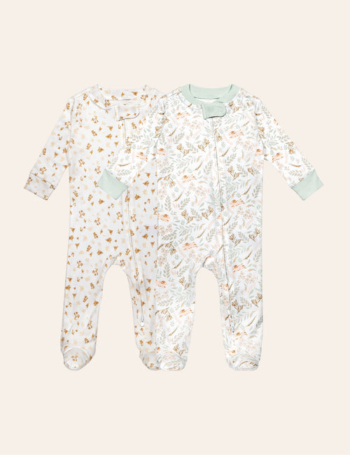My Little Zone - 2-Pack Zipper Footies - Woodland Collection
