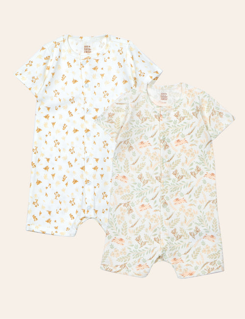My Little Zone - 2-Pack Short Sleeve Baby Boy Rompers - Woodland Collection - Newborn