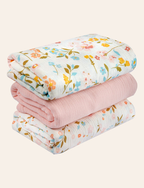 My Little Zone - 3-Pack Muslin Swaddle Blankets - Flower Collection