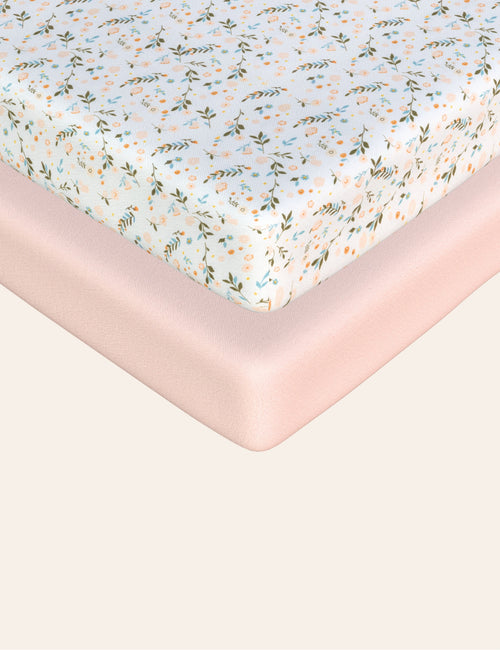 My Little Zone - Jersey 2-Pack Crib Fitted Sheets - Flower Collection (Pink - Floral)
