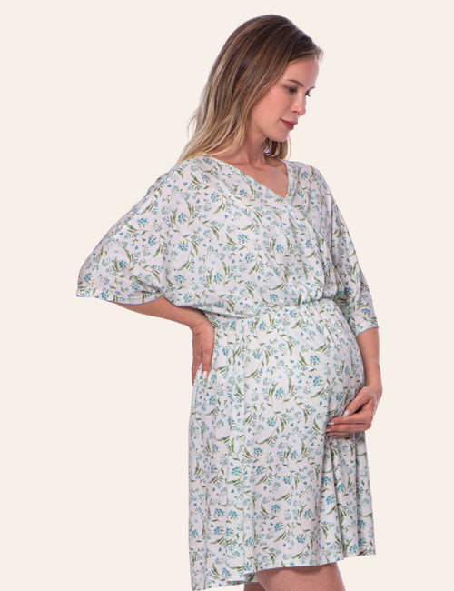 My Little Zone - Maternity Dress - Botanical Collection - Print Blue