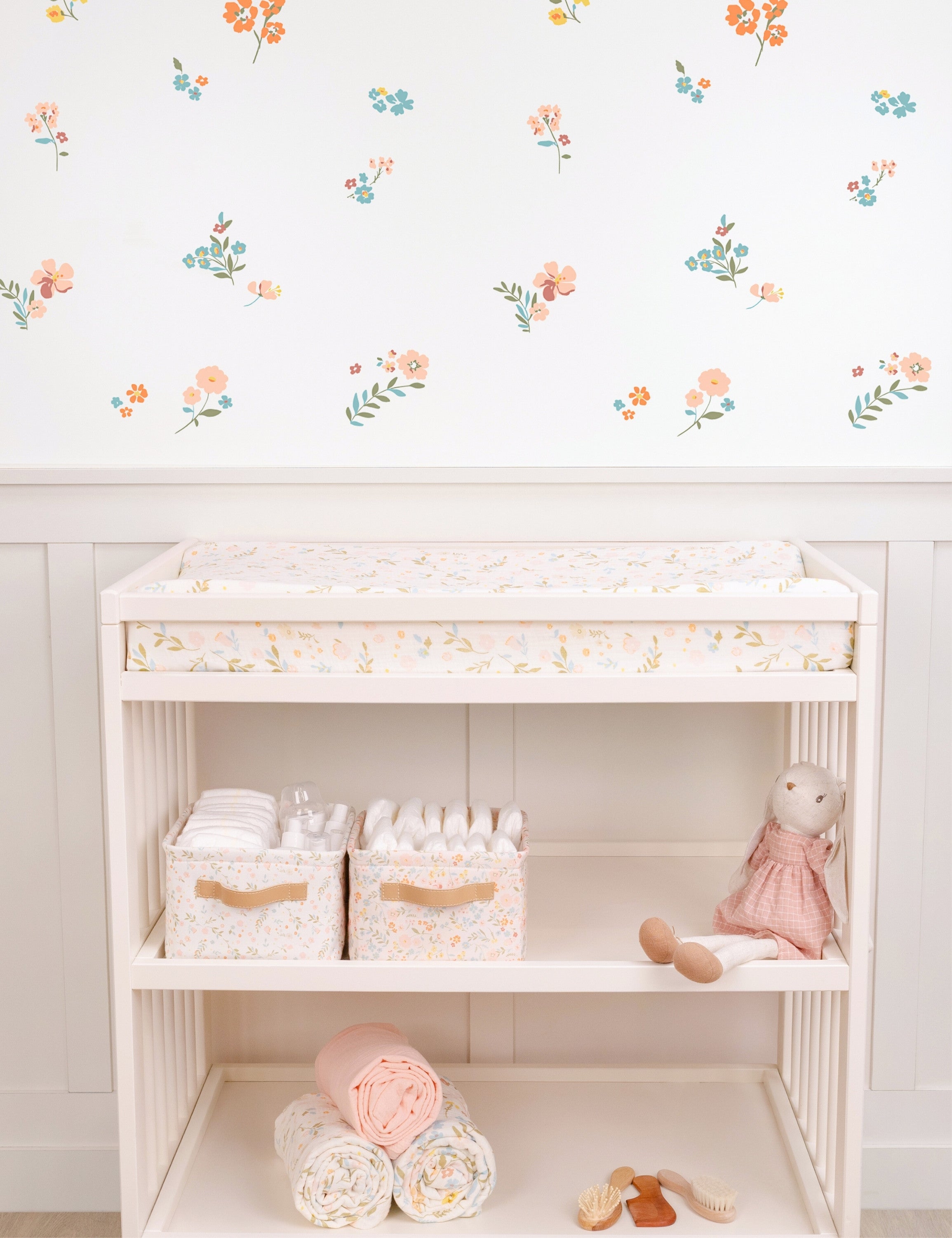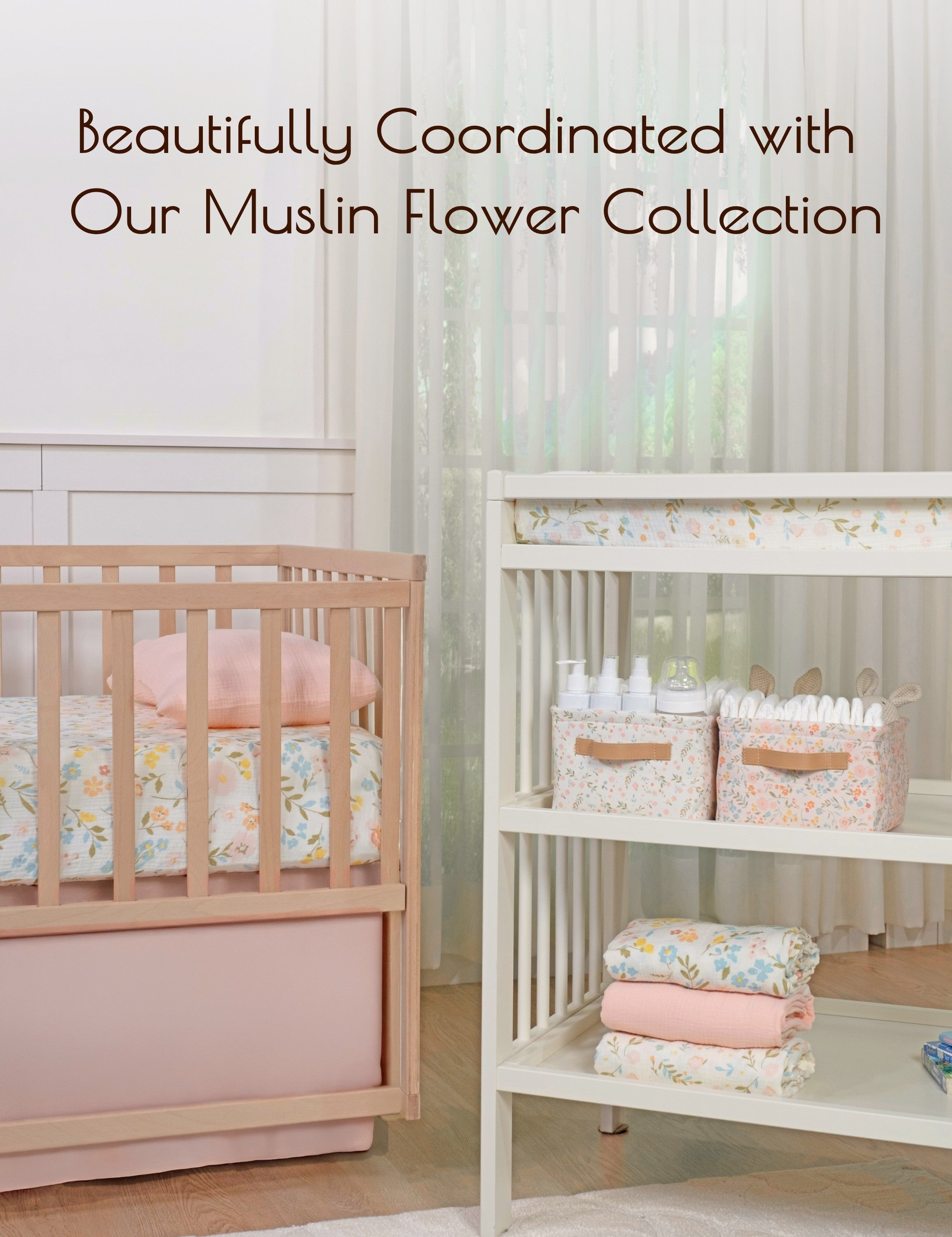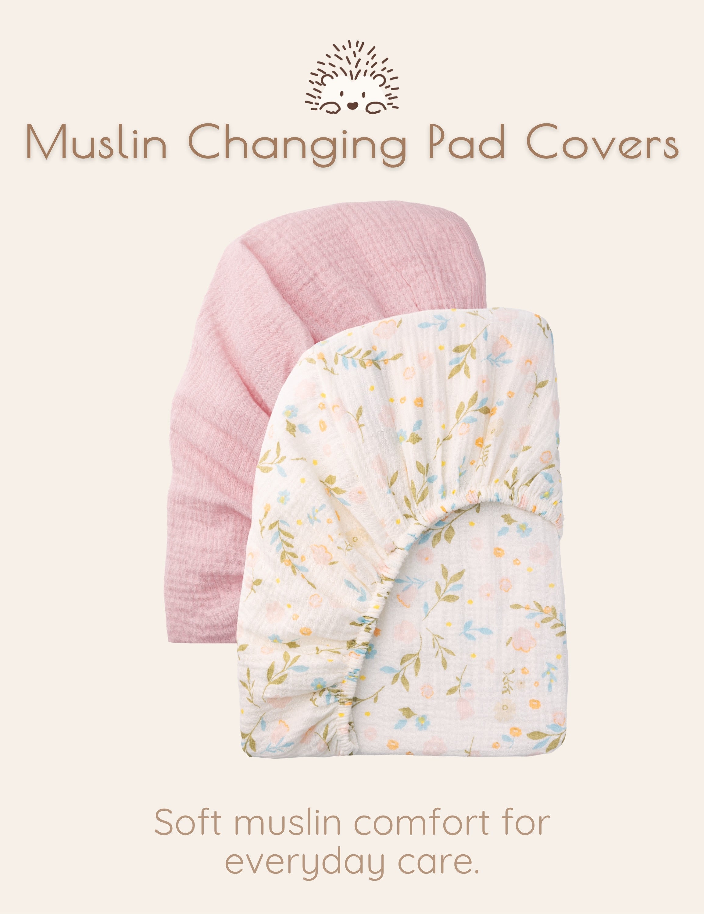 A soft, floral muslin changing pad cover set made to bring comfort and beauty to everyday diaper moments.