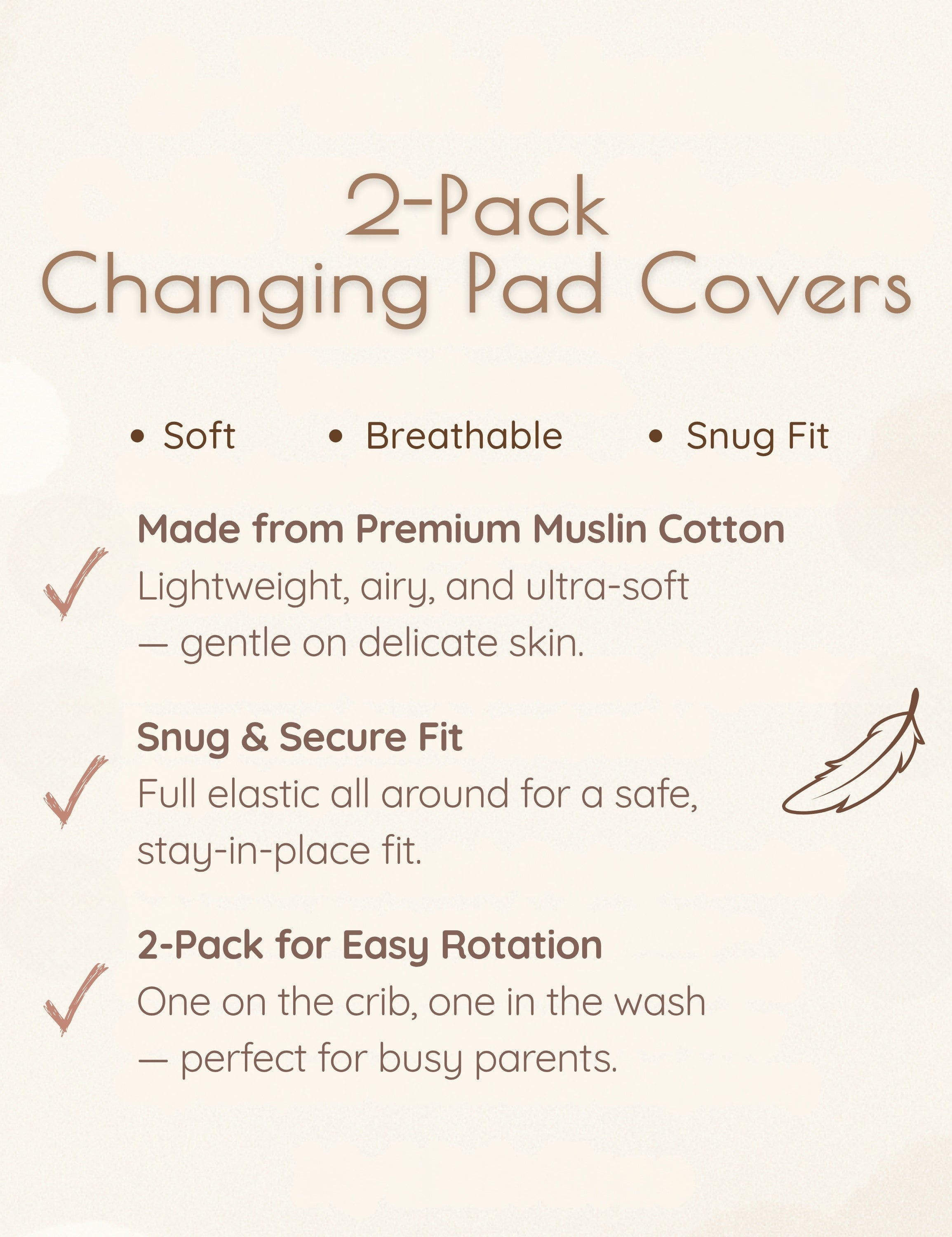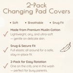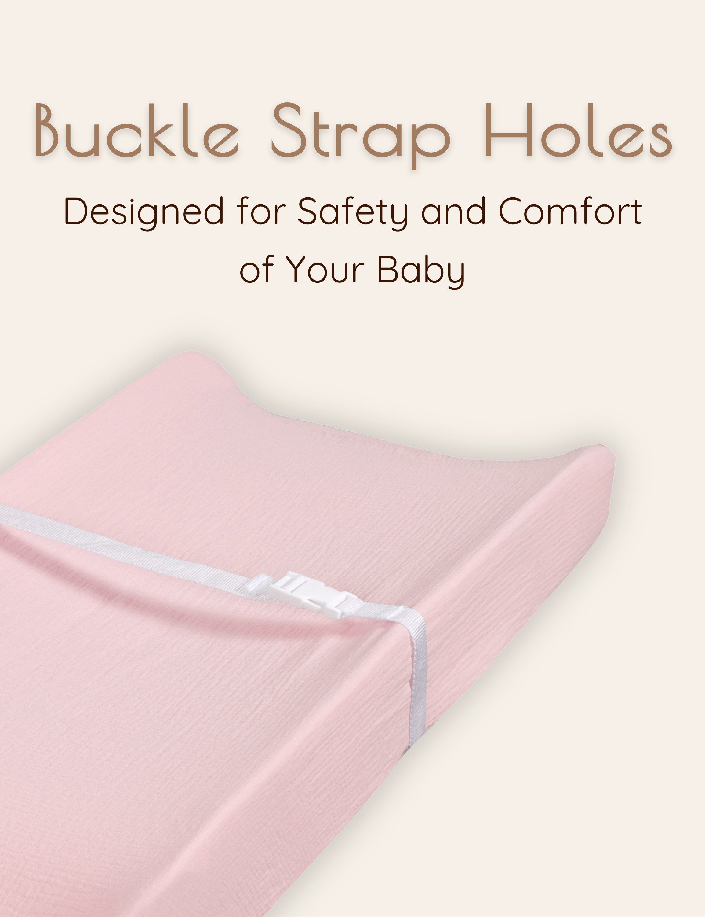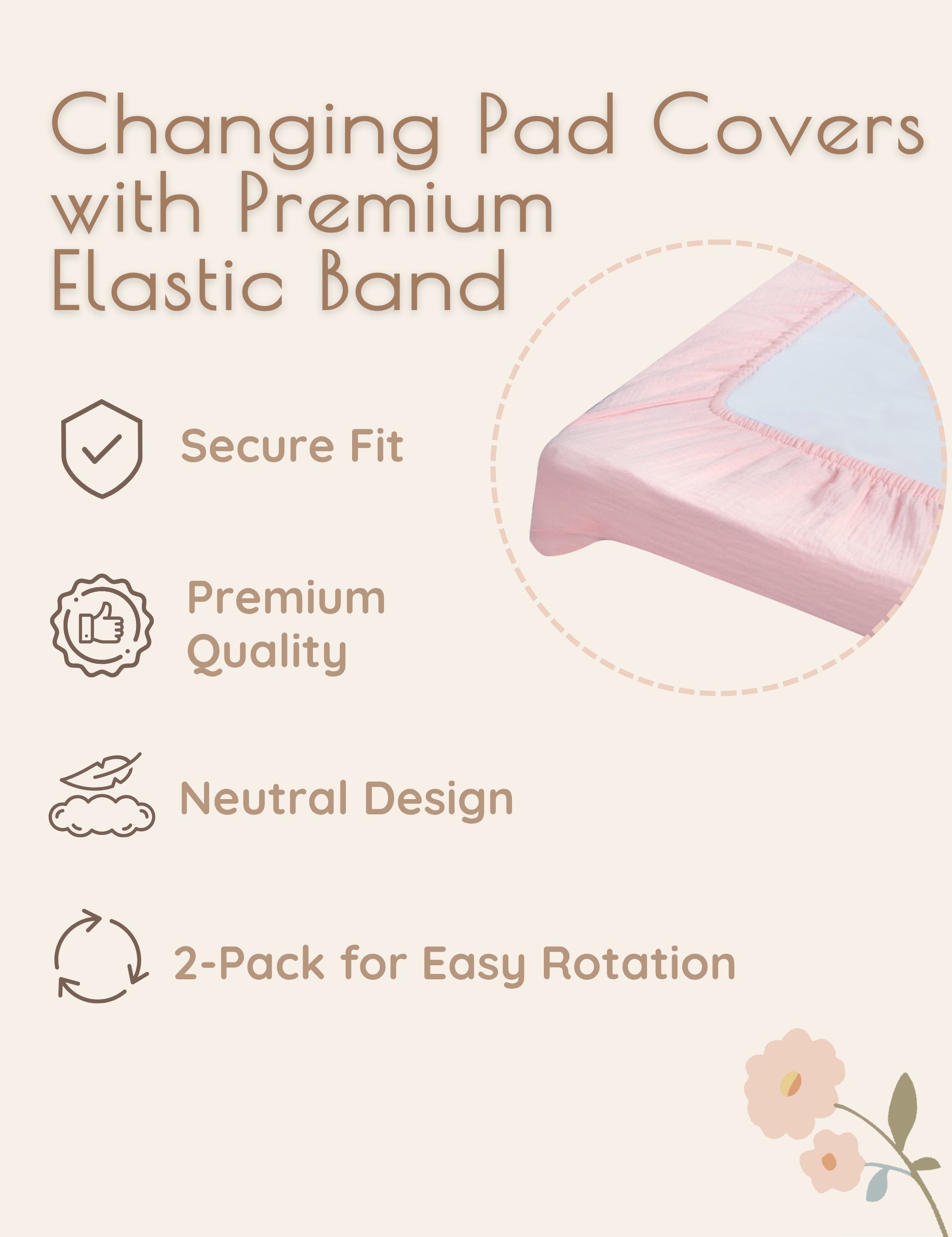 Material: 100% Muslin Cotton. These diaper changing pad covers are crafted from soft, breathable, OEKO-TEX® certified muslin for everyday comfort and skin safety. The natural, gentle texture makes this pink changing pad cover set ideal for delicate baby skin.