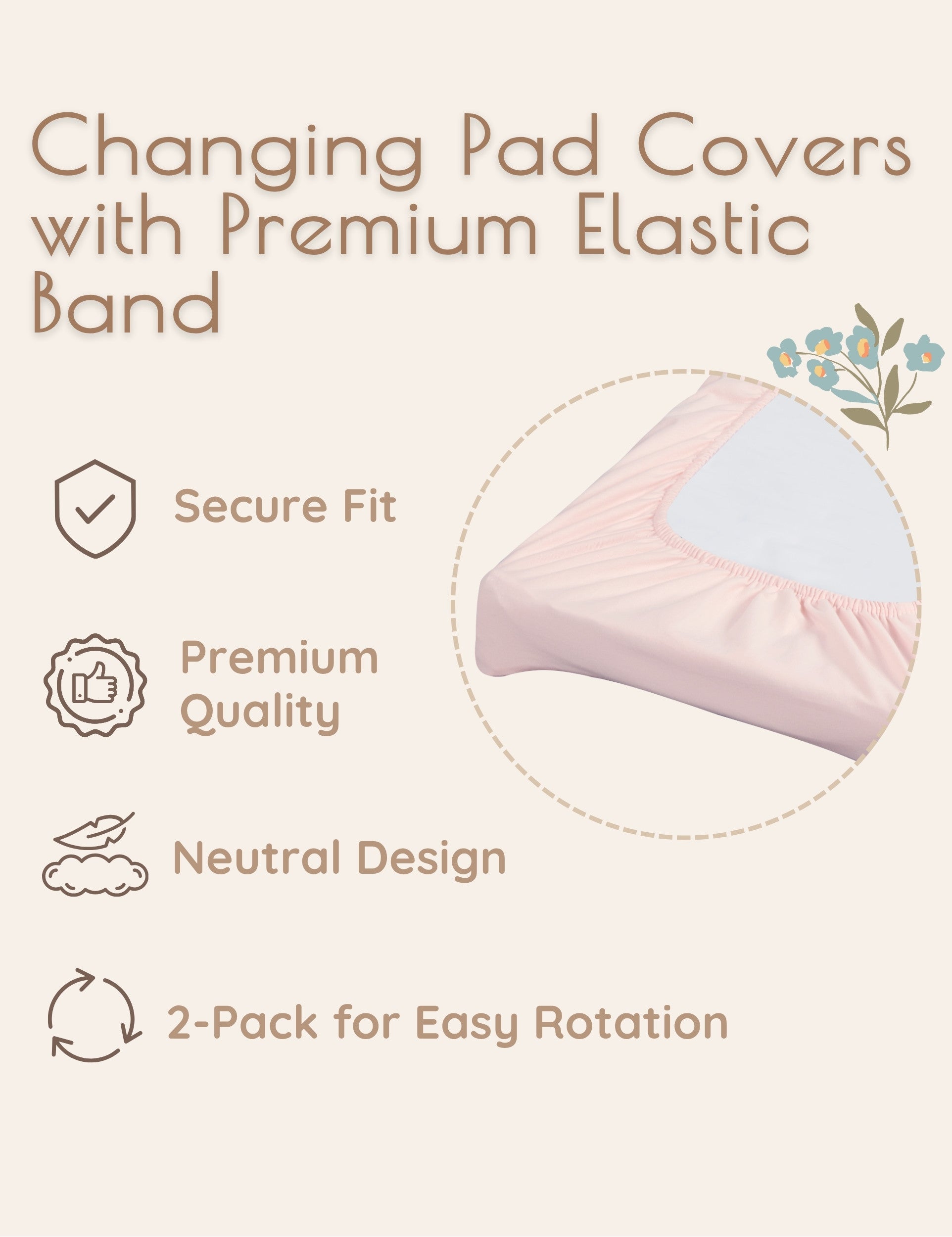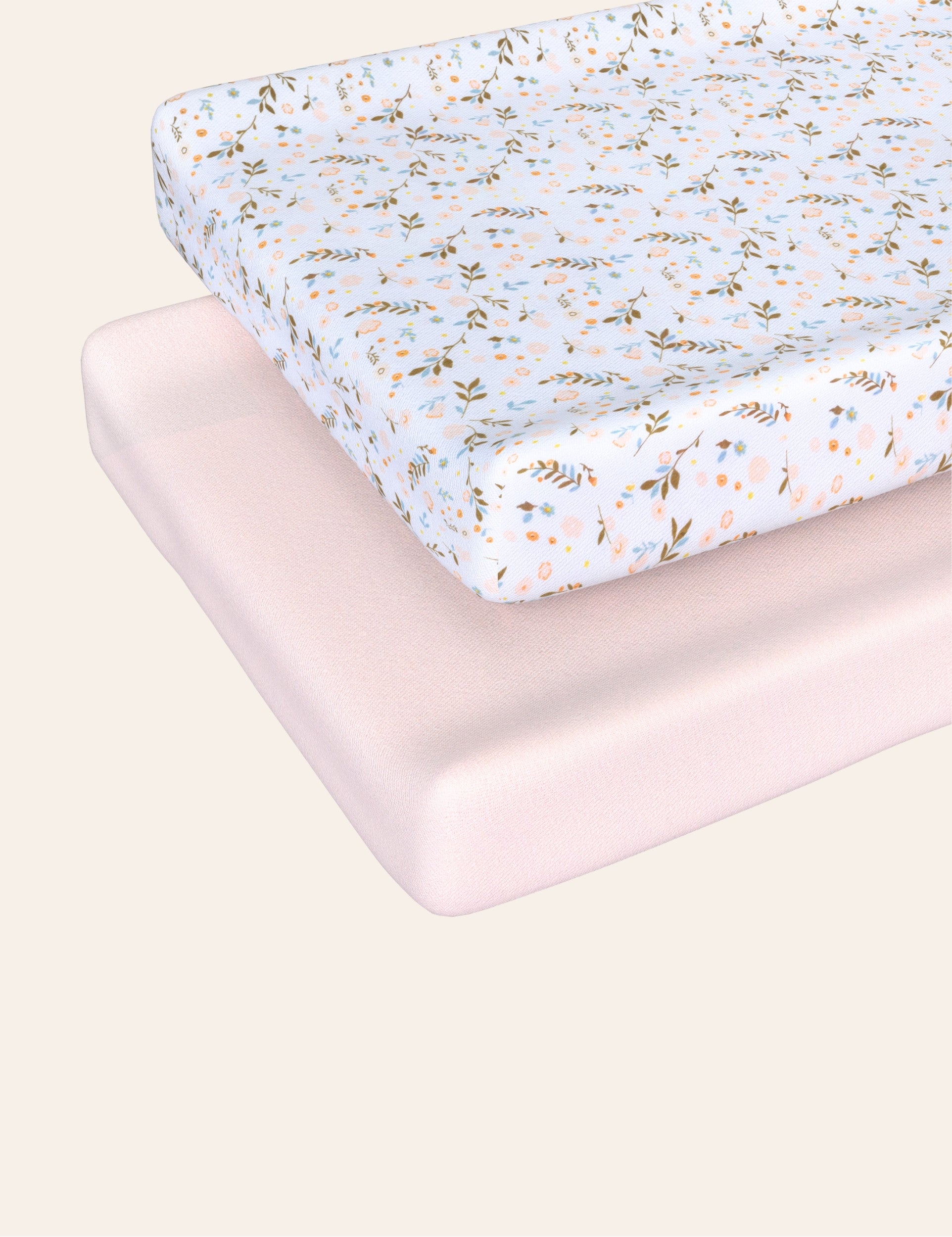 Ideal Baby Girl Gift: This 2-pack floral pink changing pad cover set makes a thoughtful choice for baby shower gifts for girls, baby registry must-haves, and newborn essentials. Soft, practical, and gift-ready, these diaper changing pad covers are baby essentials parents will reach for every day.