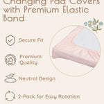 Features: These diaper changing pad covers have full elastic with extra stretch all the way around, ensuring a secure fit through wiggles, kicks, and daily diaper changes, making them practical for both newborns and growing babies. Designed with safety strap holes for added convenience.