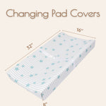 Size: Fits all standard changing tables, diaper changing pads and measure 32"x16" with 8" deep pocket. Each box includes 1 marine changing pad cover and 1 teal and white ocean stars changing pad cover. Our diaper changing table pad cover has stretchable elastic and buckle holes for a secure fit.