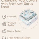 Material: Our marine changing pad cover is crafted from soft, breathable, and OEKO-TEX® certified 100% cotton woven fabric, ensuring safety and comfort for your baby’s sensitive skin. This premium diaper changing pad cover maintain their softness and elegant teal-and-white tones even after countless washes.