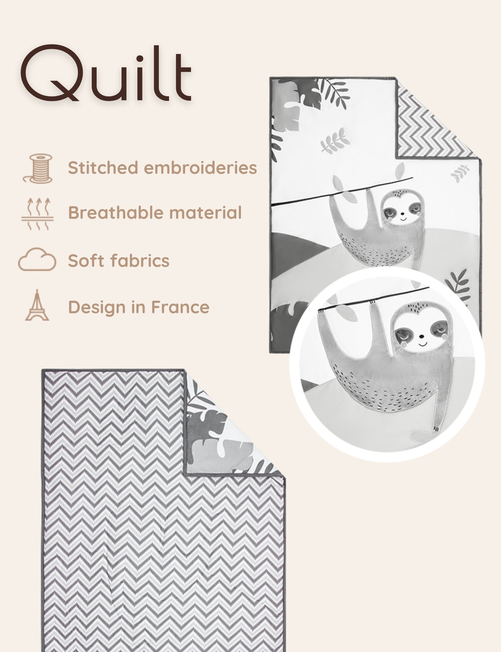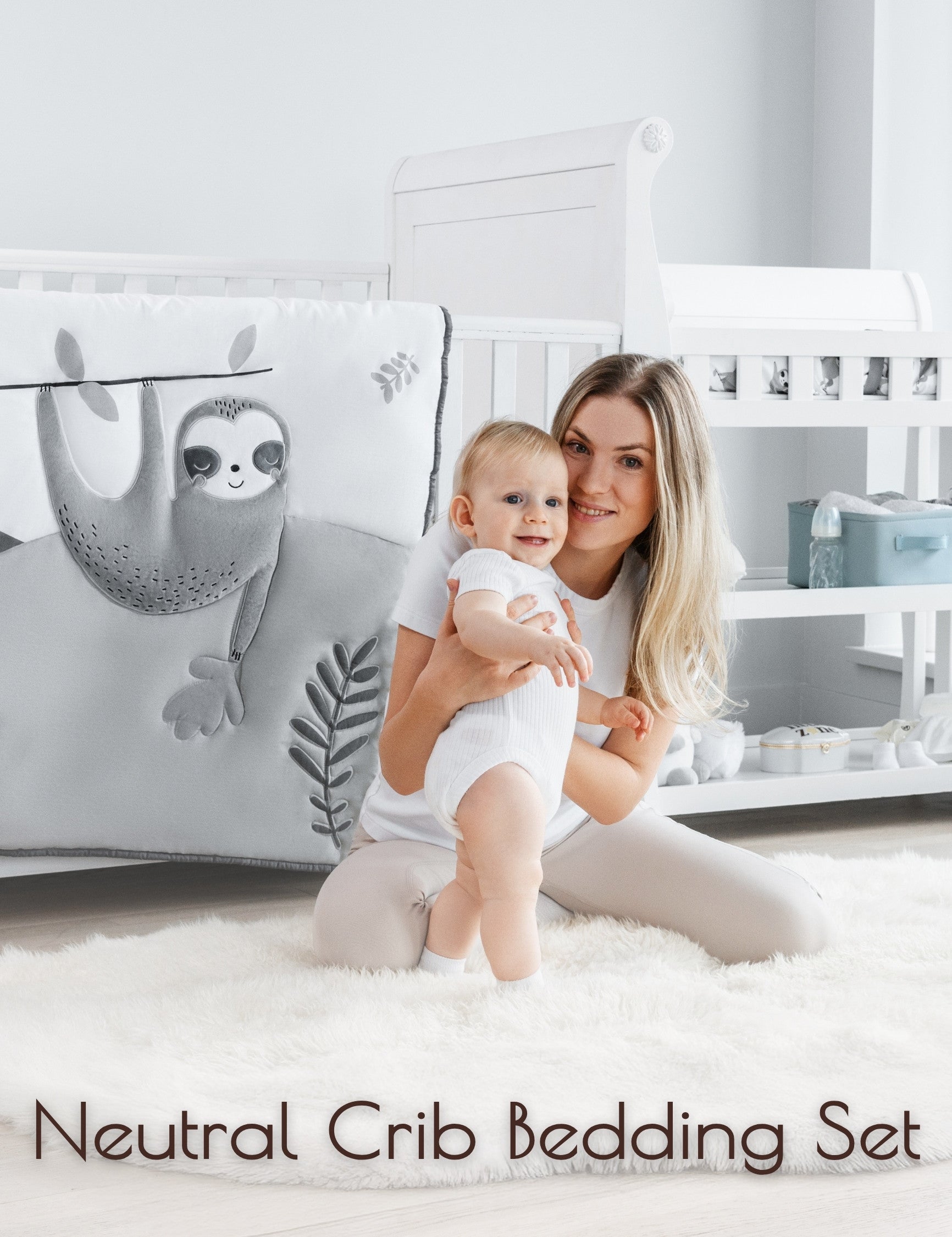 Design:Designed in France, our sloth crib bedding set is a favorite baby registry item for parents creating a neutral nursery theme. Beautifully packaged and ready to gift, these forest theme crib bed sets make a thoughtful choice for baby shower gifts and baby registry must-haves.