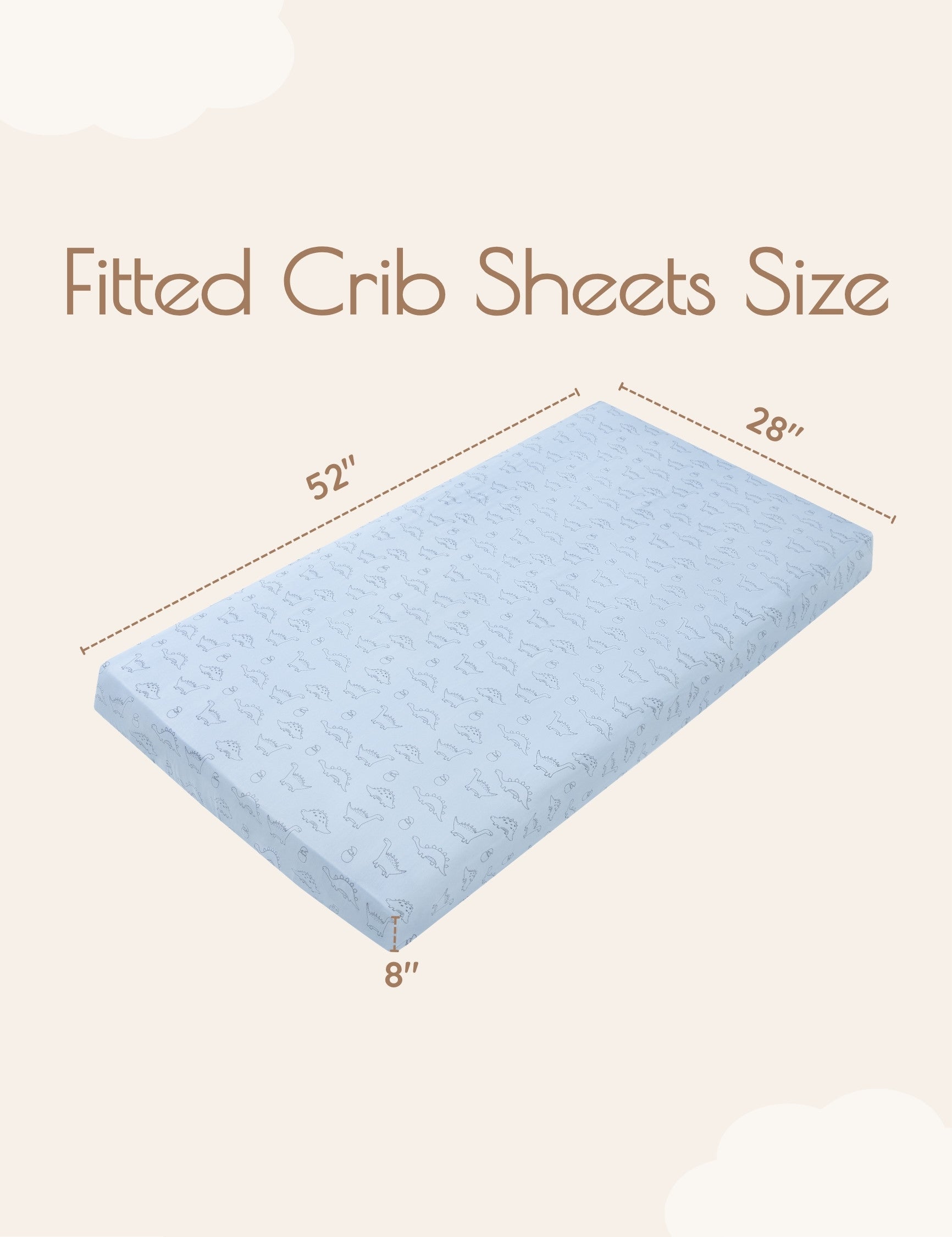 all the way around ensuring a safe and secure fit on standard size crib and toddler mattresses measuring 52" x 28".