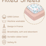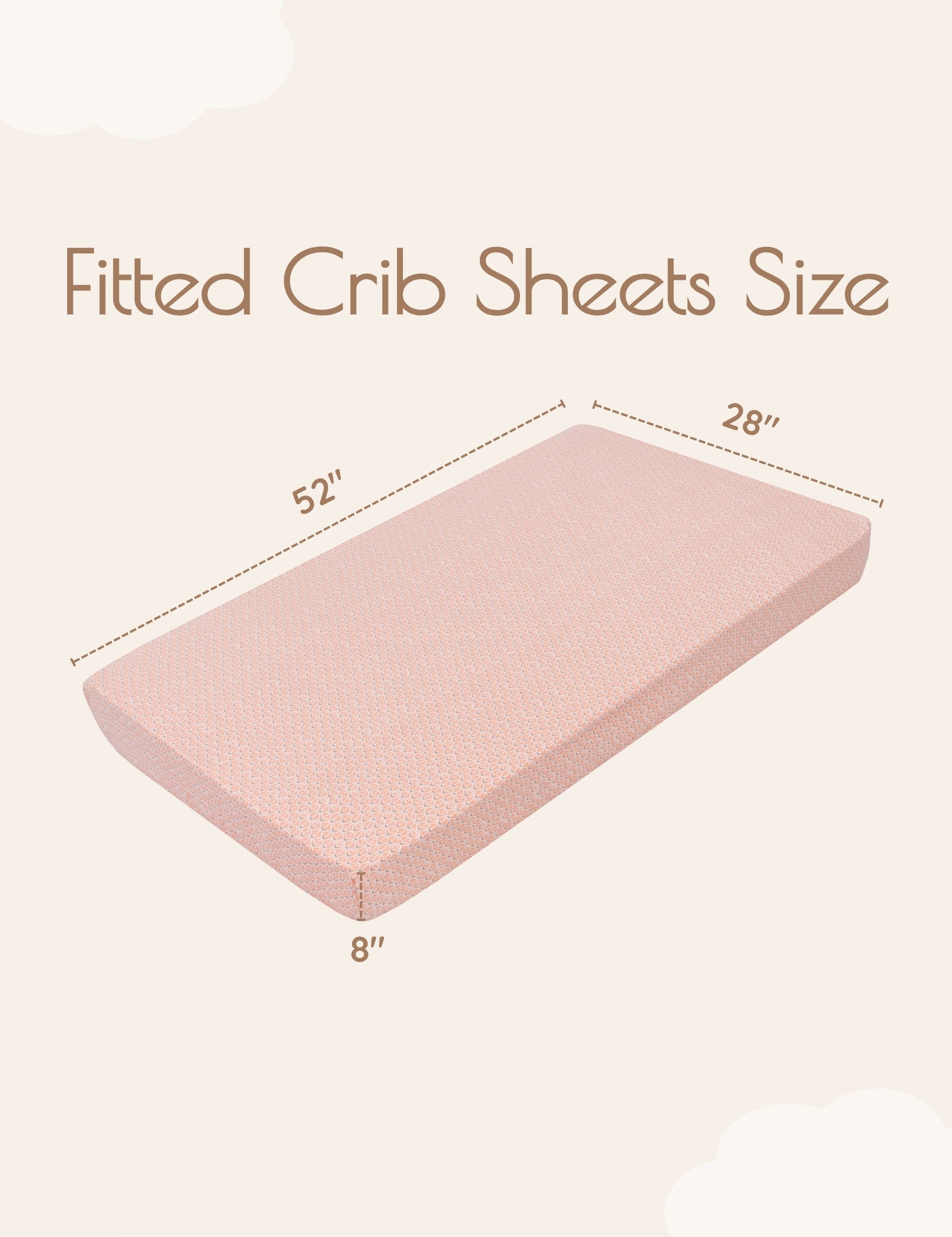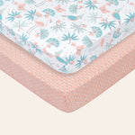 Size: Fits all standard 52x28-inch cribs and crib matresses. Each box comes with 1 pink coral crib sheet and 1 jungle leaves baby crib sheet (28"x52" with 8" deep pocket) Our fitted sheets have stretchable elastic for a secure fit.