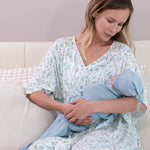Function: This botanical blue maternity dress provides exceptional comfort with its buttery-soft, airy fabric—making it one of the best labor and delivery gown options, a perfect postpartum recovery piece, and an easy everyday essential. The V-neckline allows simple nursing access while still offering gentle, full coverage when desired, making it a truly functional nursing dress among modern nursing dresses.