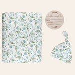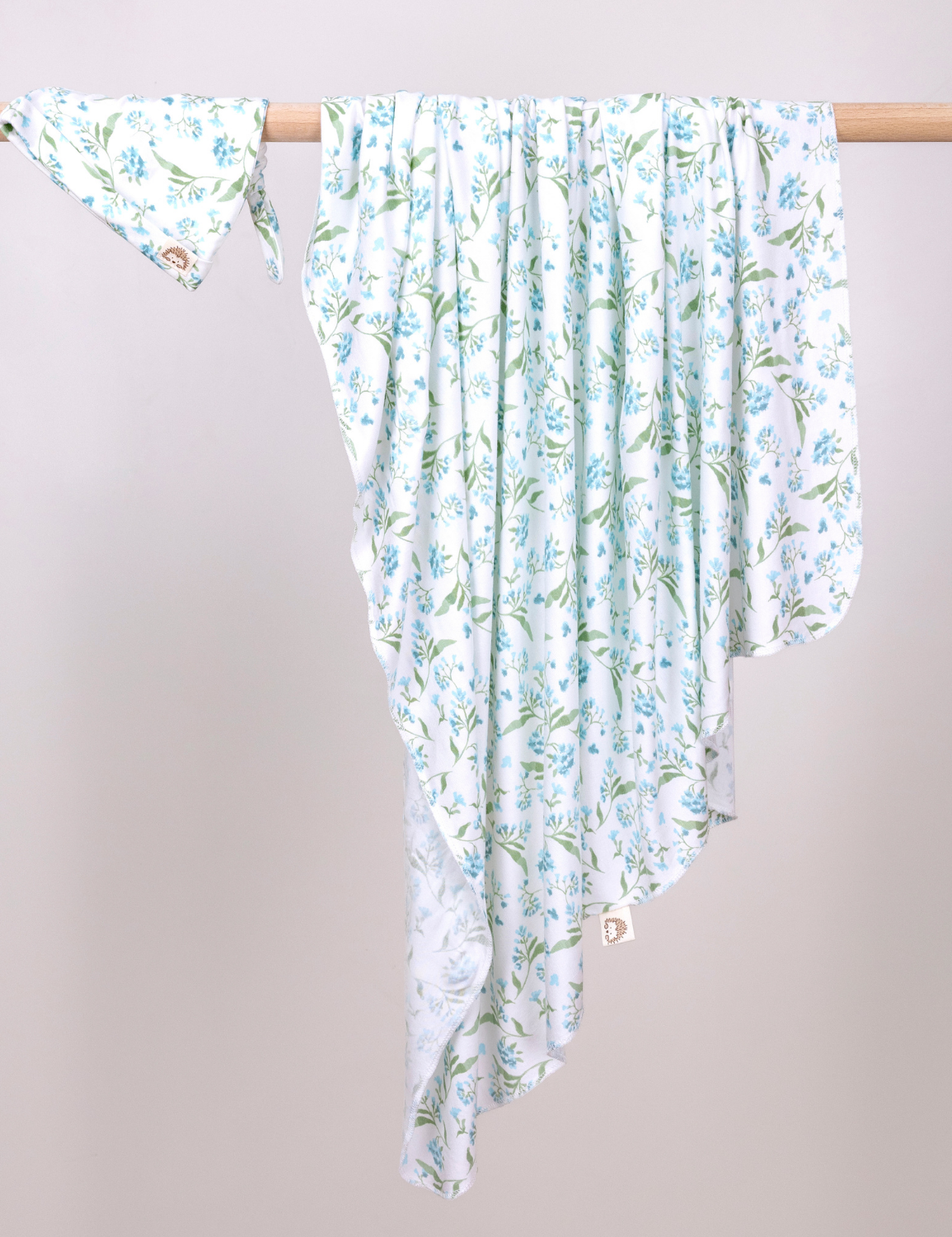 Discover our botanical blue newborn receiving set made from soft viscose for comfortable swaddling!