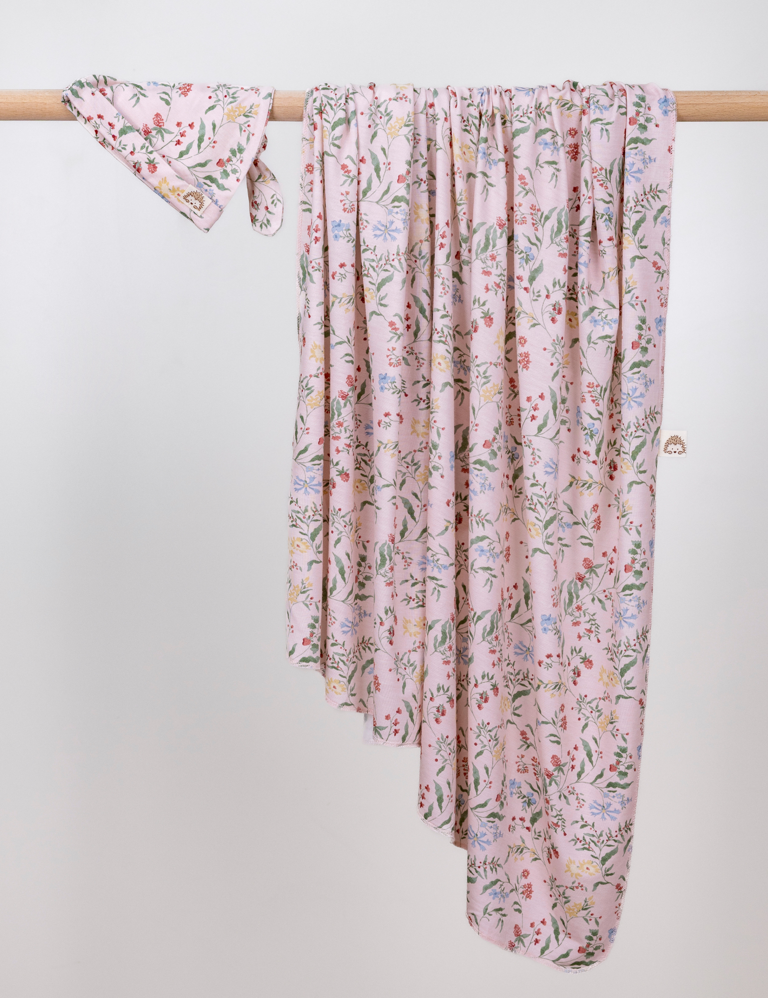 Discover our botanical pink newborn receiving set made from soft viscose for comfortable swaddling!