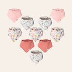 Design: Designed in France, this 10-piece baby girl bib set includes six floral-patterned and four solid pink bandana bibs inspired by nature. The soft floral details and pink tones pair beautifully with baby clothes, baby bedding and nursery decor, adding a sweet touch to your baby essentials collection.