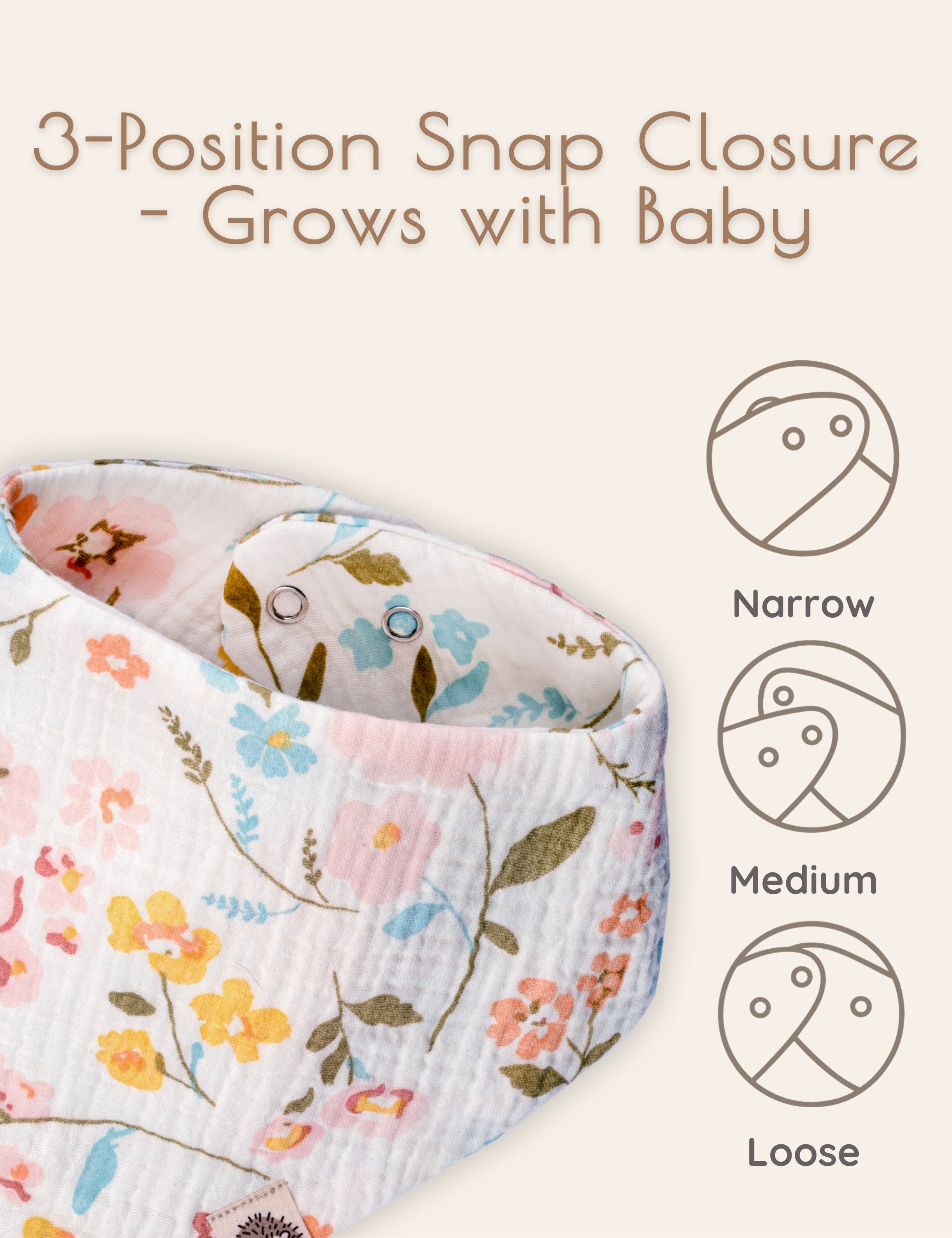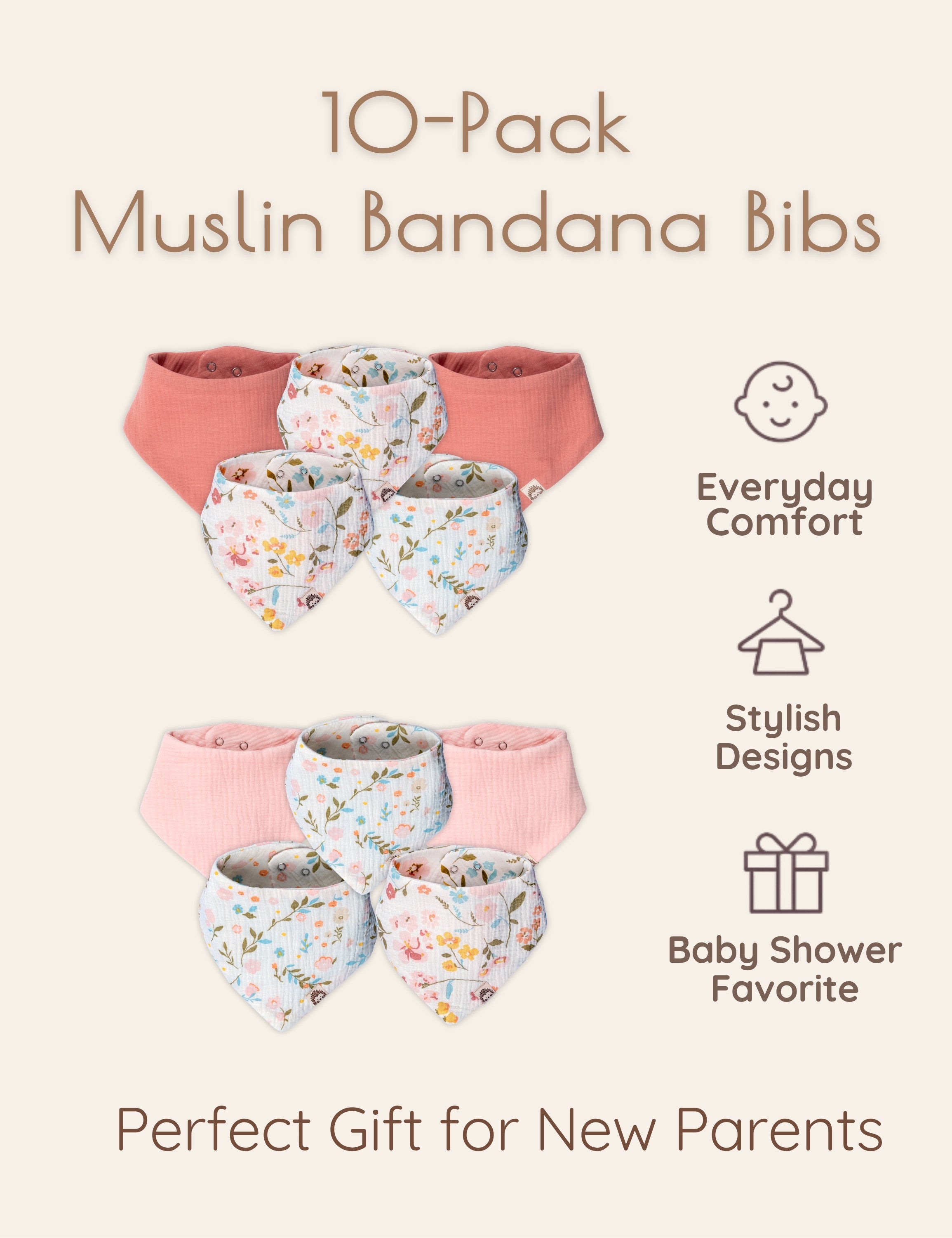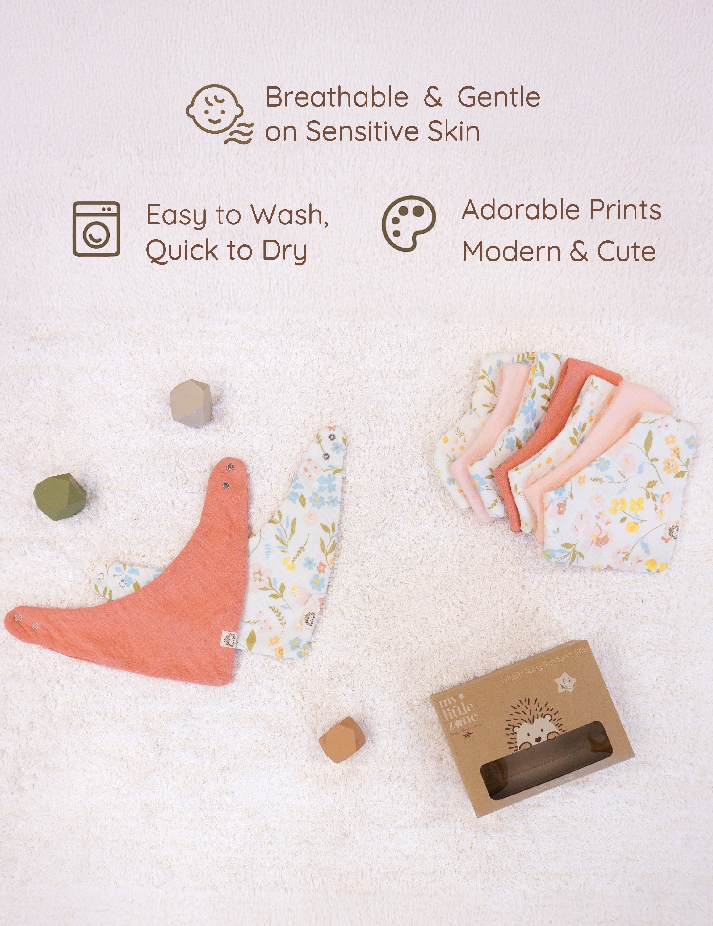 A soft, nature-inspired muslin bandana bib set designed for your baby girl’s sweetest everyday moments!