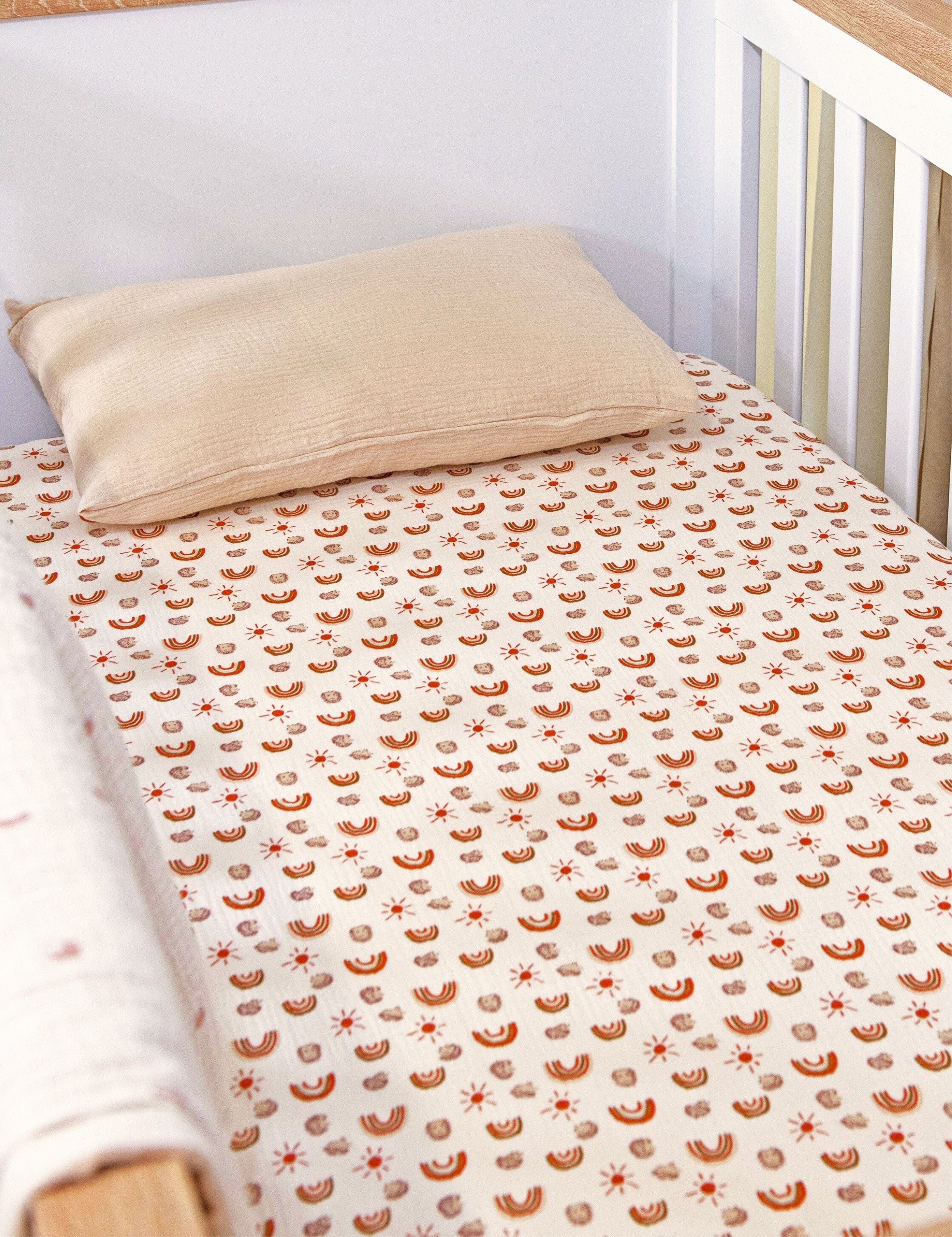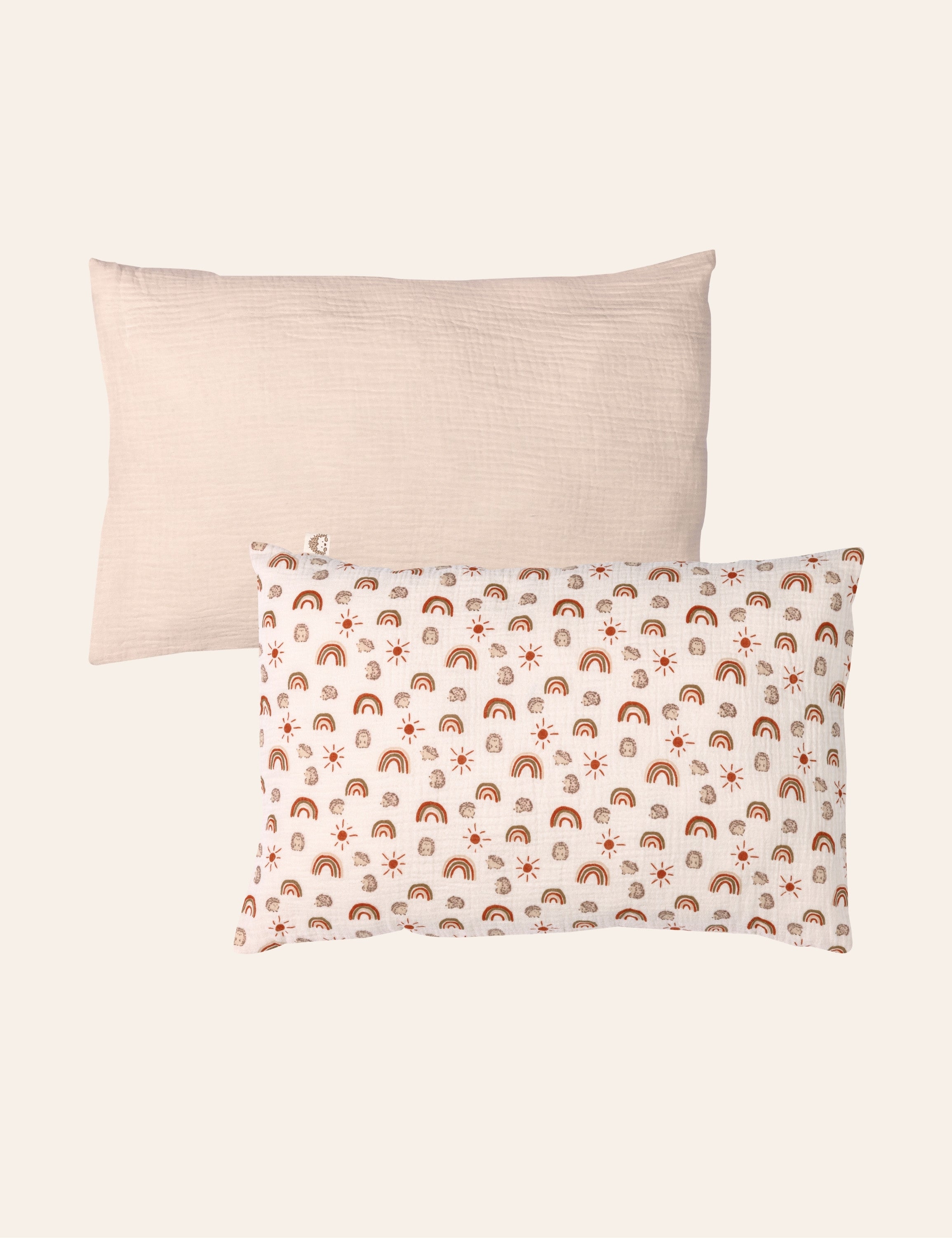 This soothing muslin toddler pillowcase duo created for cozy and playful sleep routines.