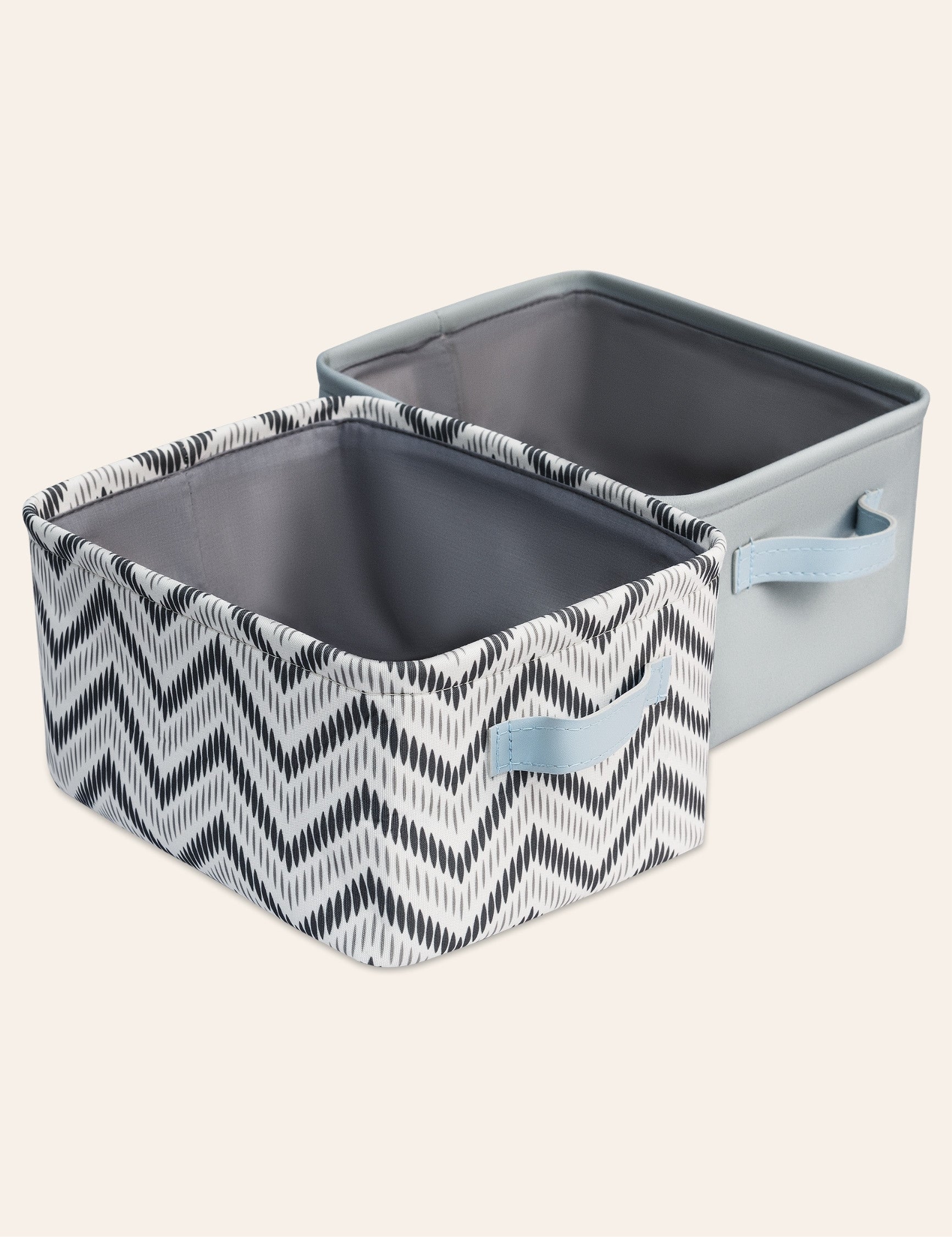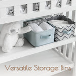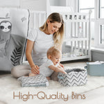 Design: Includes one solid and one printed nursery basket, designed in France to complement a neutral grey nursery theme. This stylish 2-pack nursery storage bins adds calm and organization to baby rooms, making it a thoughtful baby shower gift.