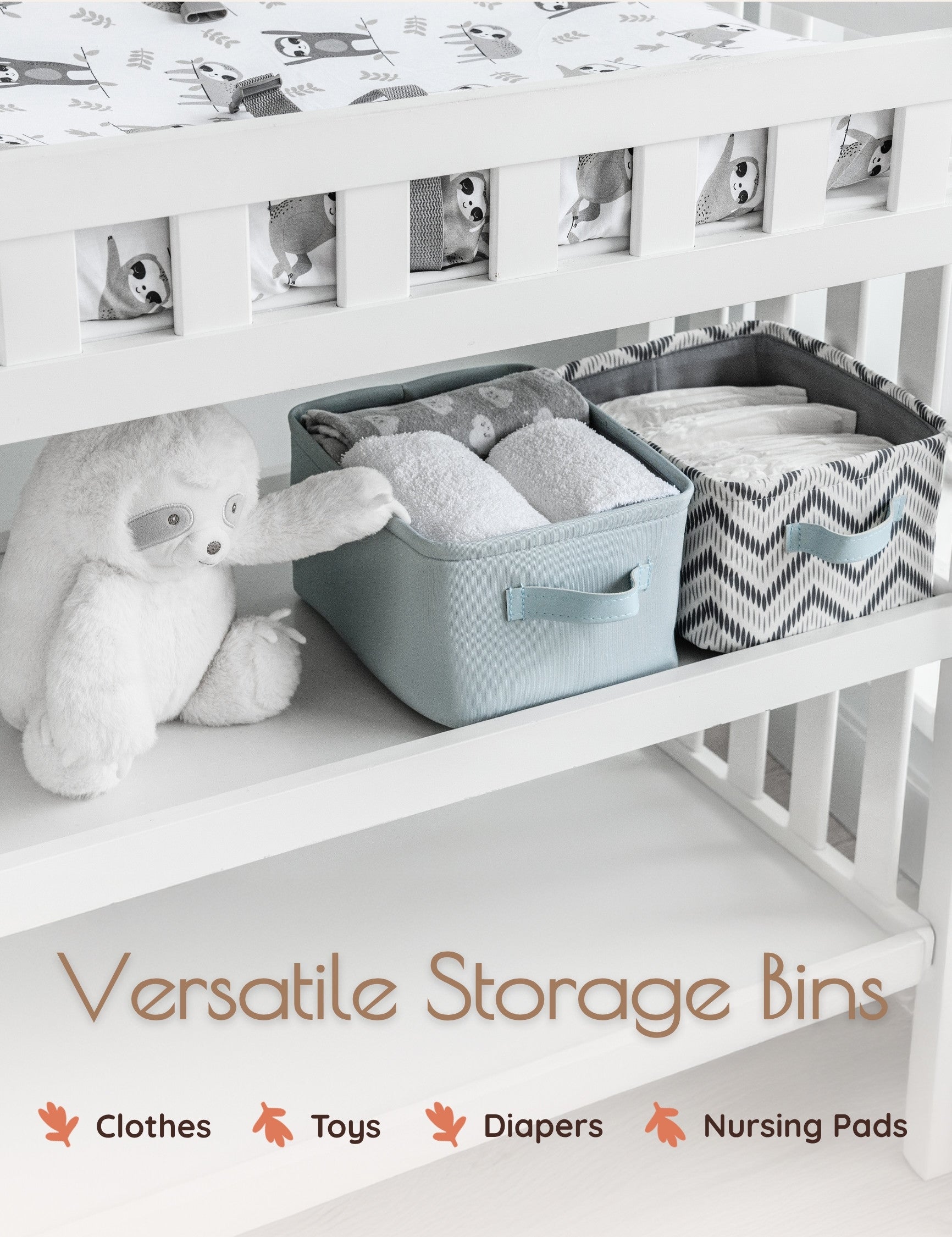 Function: Lightweight, collapsible, and portable, these nursery baskets make daily organization easy. Perfect as diaper caddies, toy bins, or towel holders, they keep essentials tidy while blending seamlessly into your nursery decor.