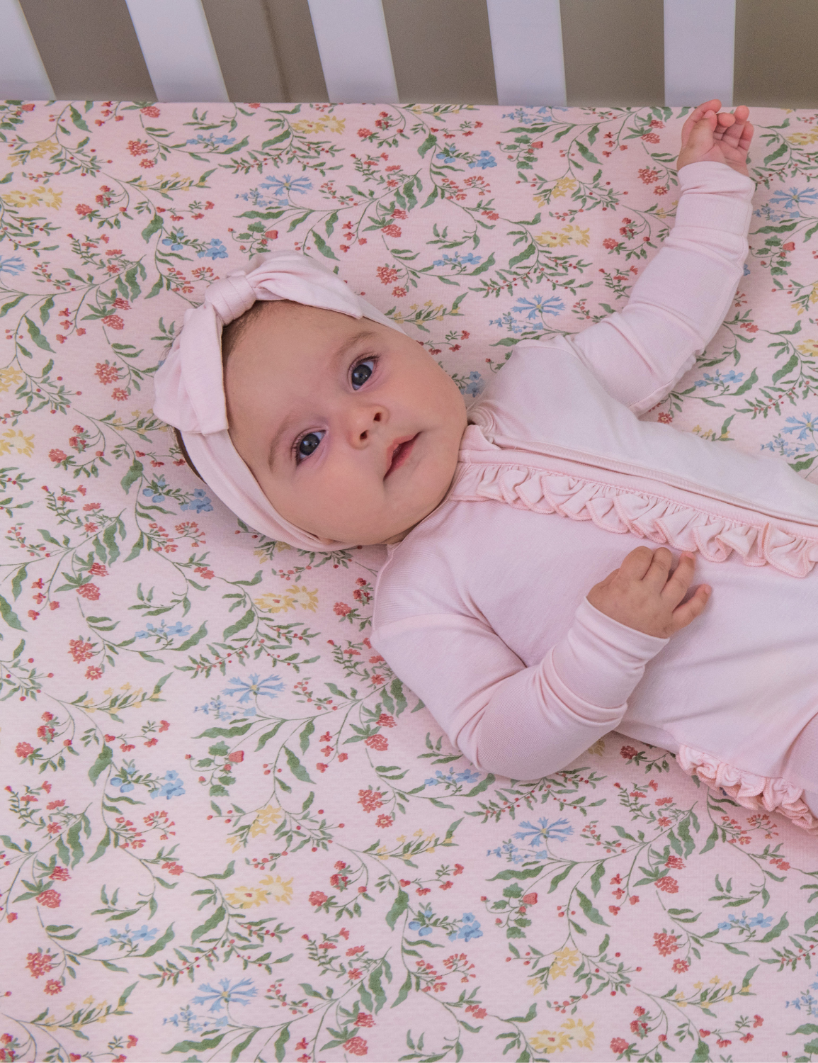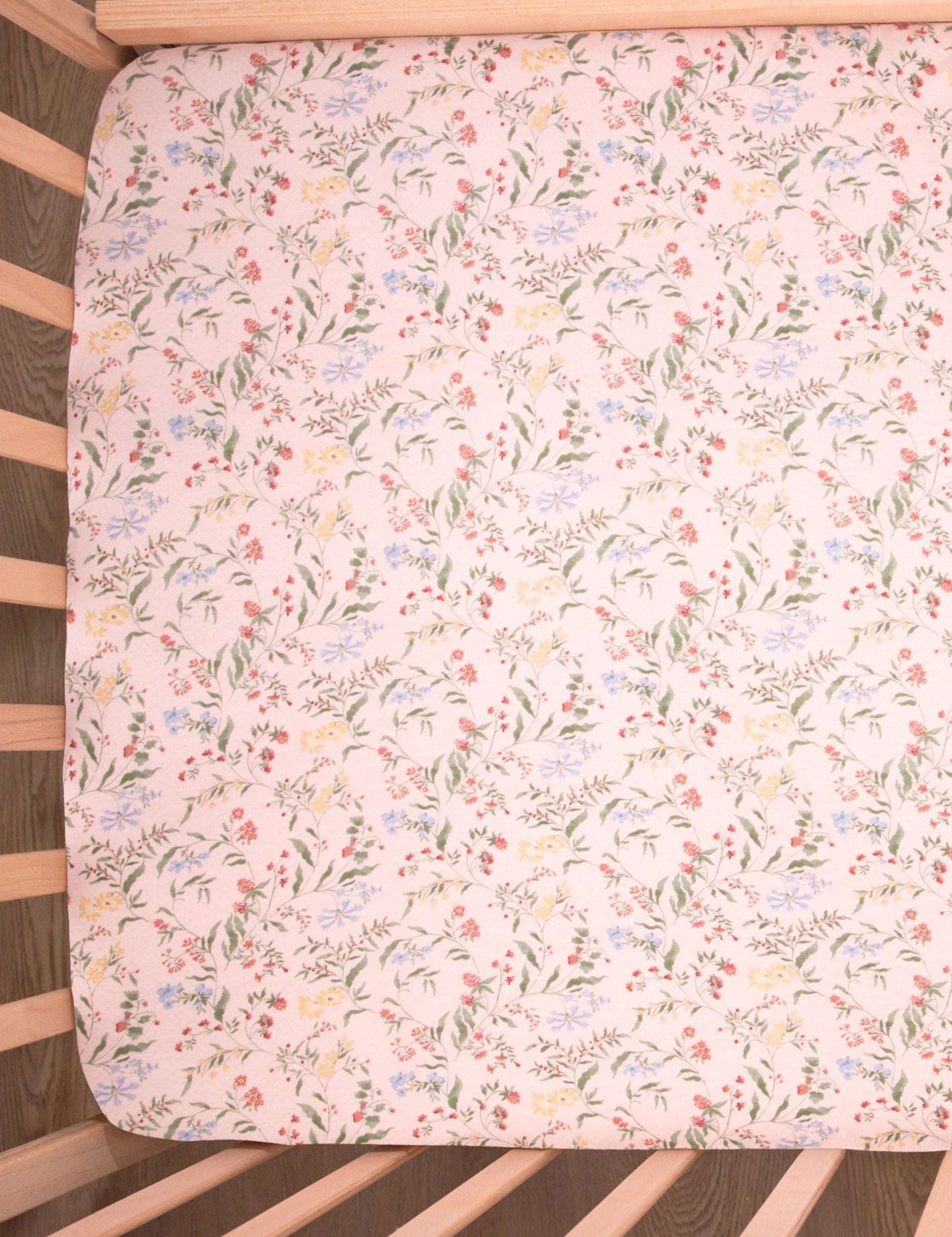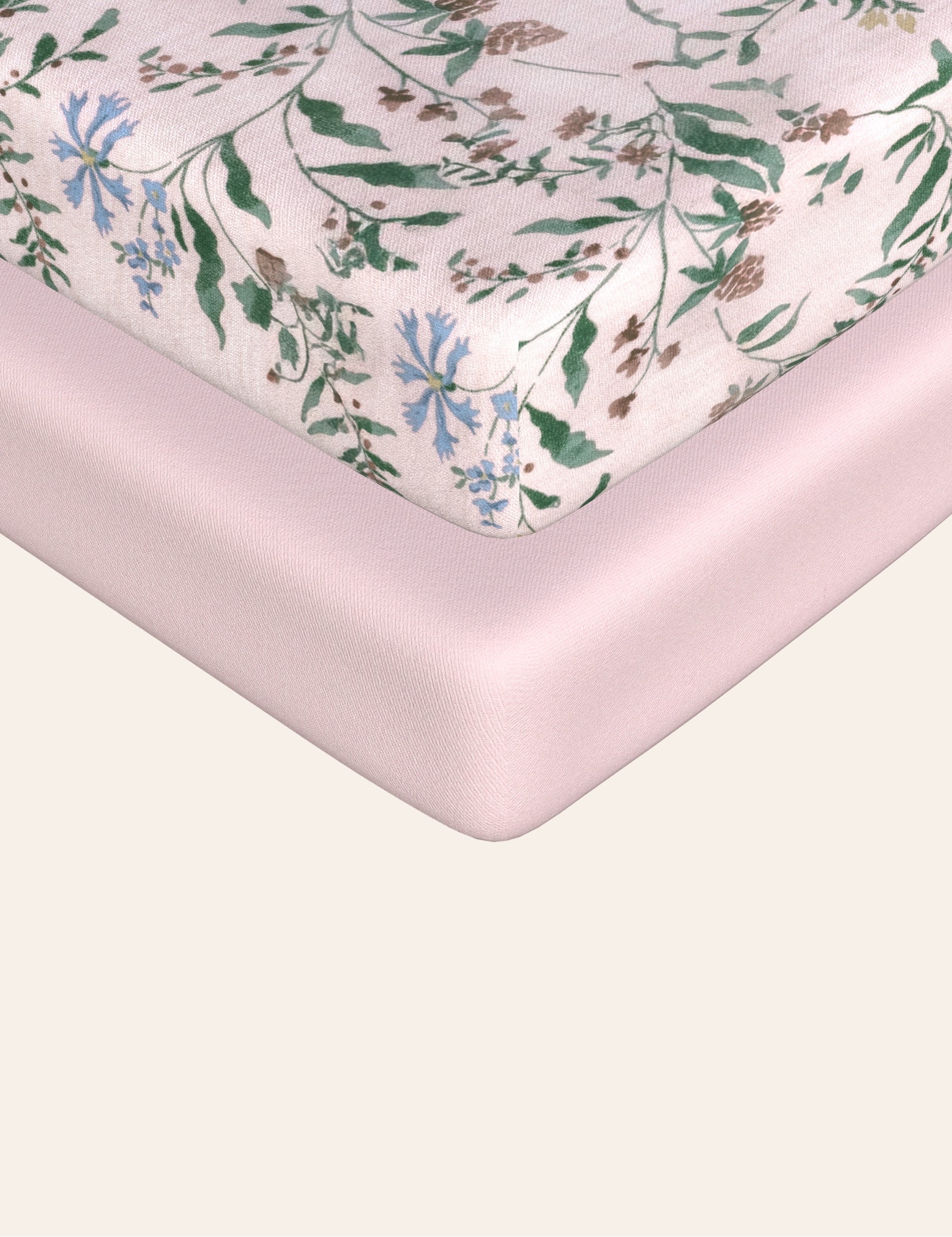 Meet our viscose botanical pink baby crib sheets, made for a safe and peaceful night’s sleep!