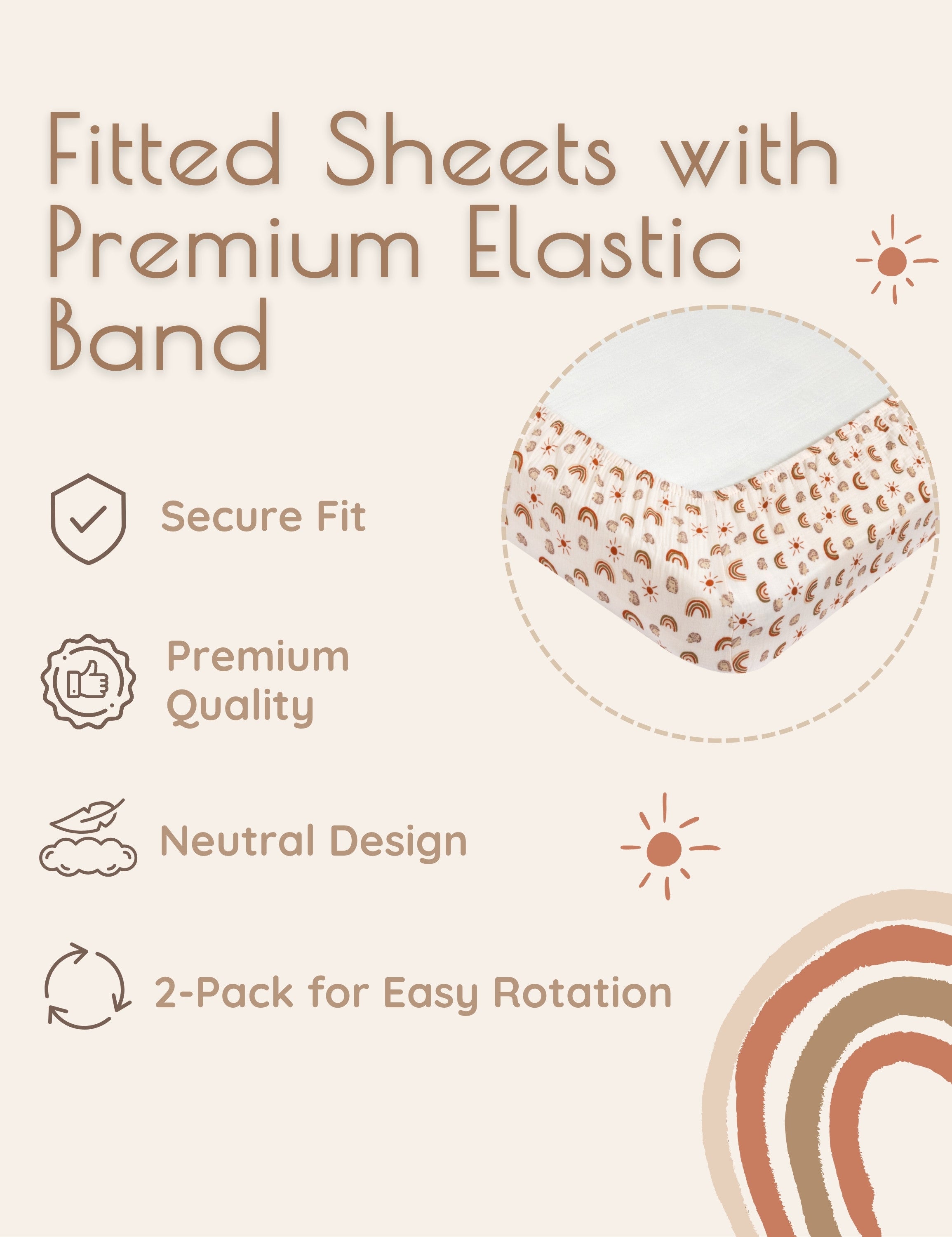Design: Designed in France, the Rainbow Collection neutral crib sheets set includes two rainbow-patterned sheets for a calm, bright, and gender-neutral look. They pair beautifully with baby clothes, nursery accessories and your overall baby essentials, adding a playful yet soothing style to your nursery.