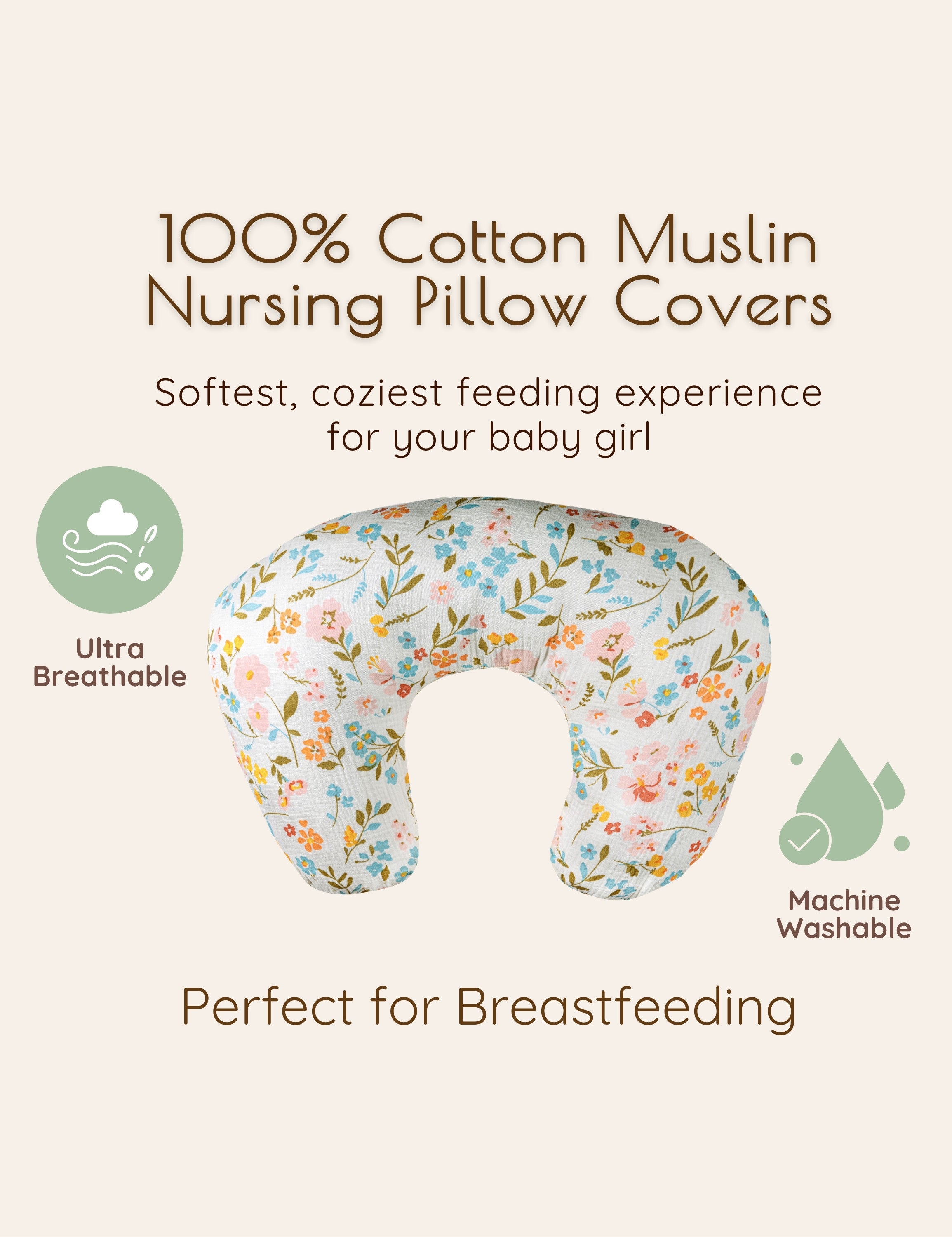 Nature-inspired muslin nursing pillow cover set designed to bring gentle comfort to every nursing moment.
