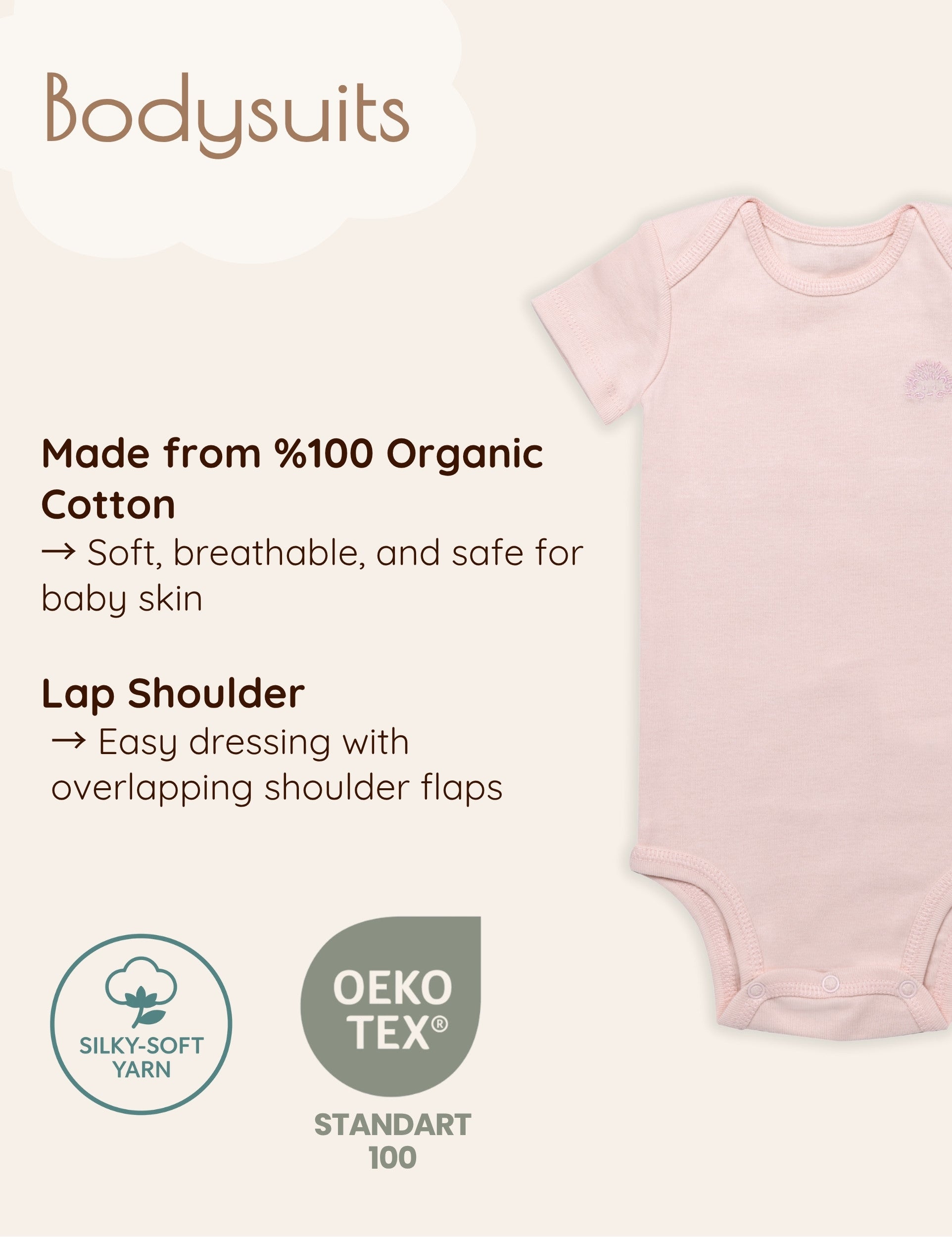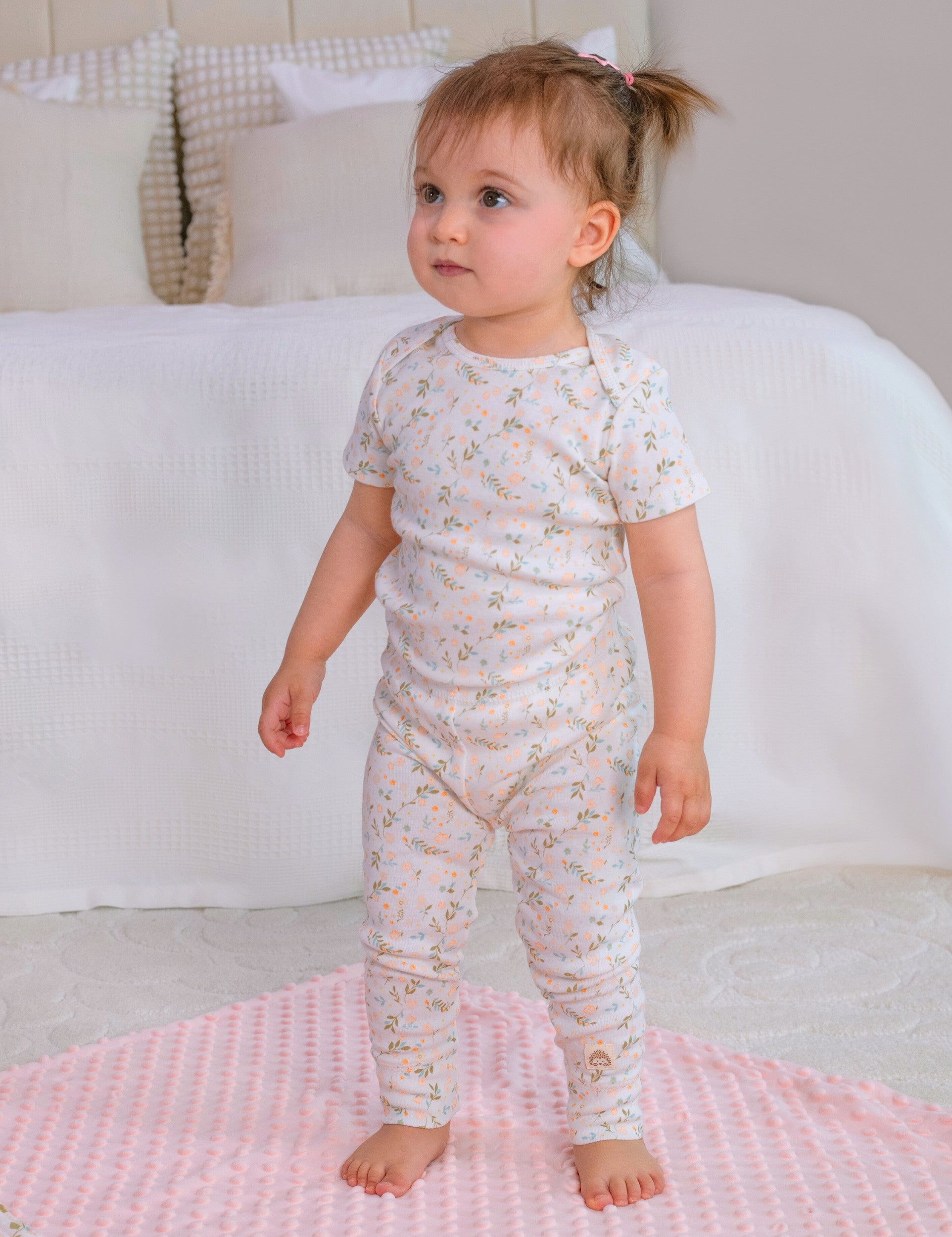 Material: 100% Organic Cotton. OEKO-TEX® and GOTS certified, this pink baby girl layette set offers premium quality and breathable comfort for everyday wear. The organic cotton baby clothes are naturally gentle, keeping your baby girl cozy and cared for.