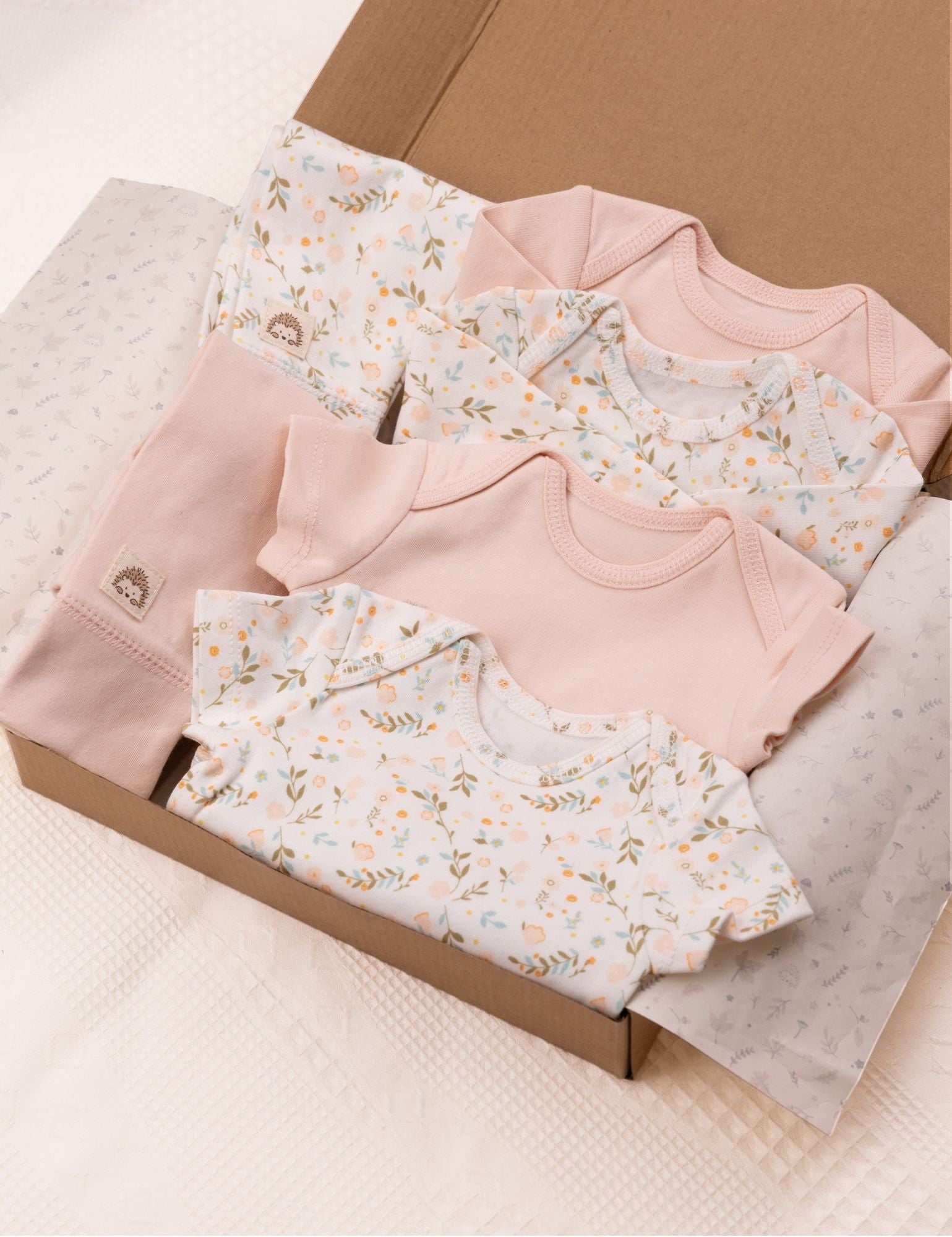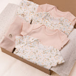 Designed in France: Created with cute floral patterns and soft pink tones, each piece in this baby layette set combines softness, comfort, and practicality.