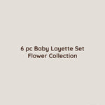 Baby Layette Set Includes: Two long-sleeve onesies, two short-sleeve onesies, and pink floral two pants. Each piece of our pink baby girl layette set is beautifully coordinated.