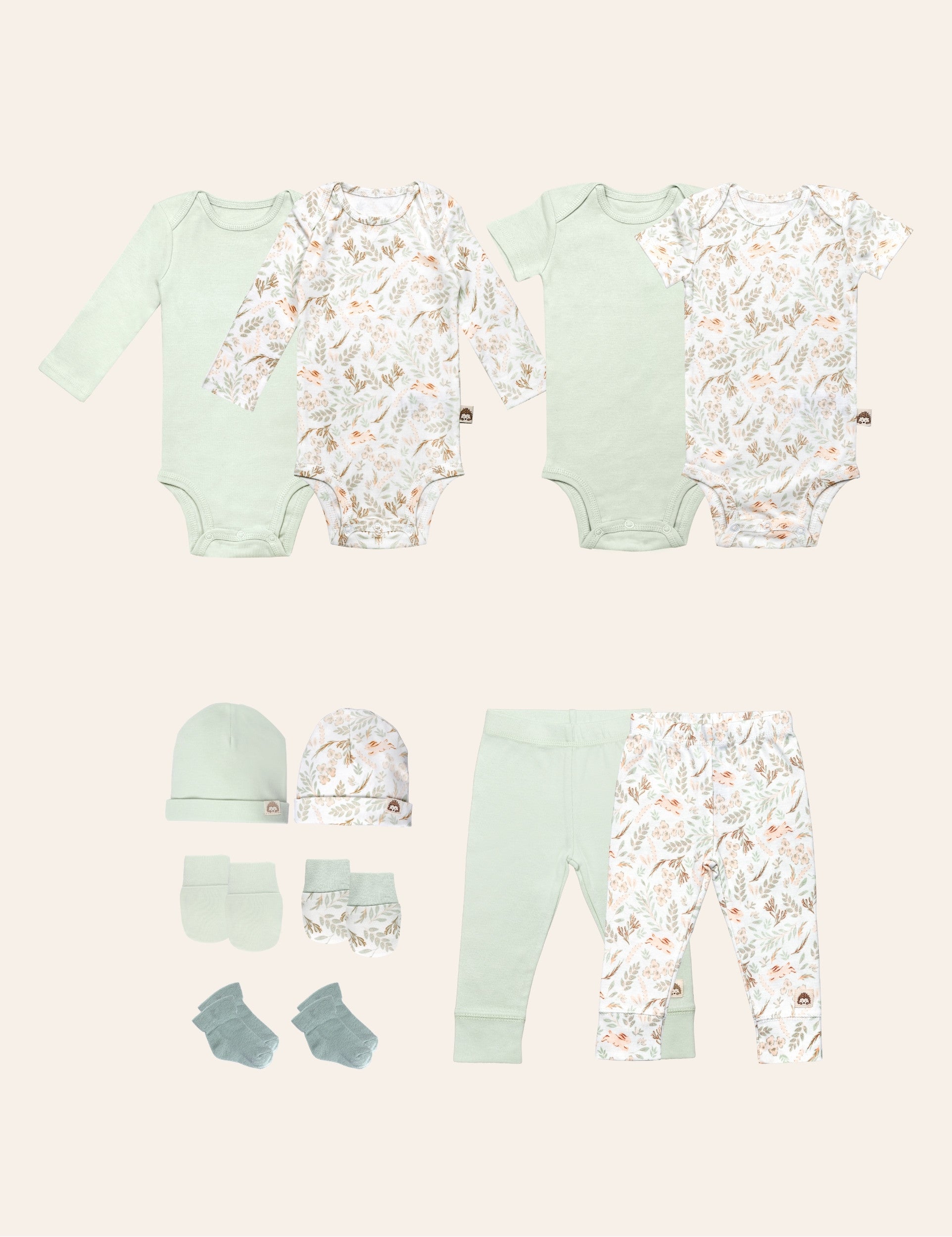 - Layette Set Girl Boy Material: Each piece of this 12-piece Newborn Baby Boy Clothes is crafted from OEKO-TEX and GOTS Certified, 100% organic cotton. These organic baby clothes offer all-day comfort for babies. This is perfect a New Born Baby Boys Gift Set as it includes all new born baby essentials must haves.