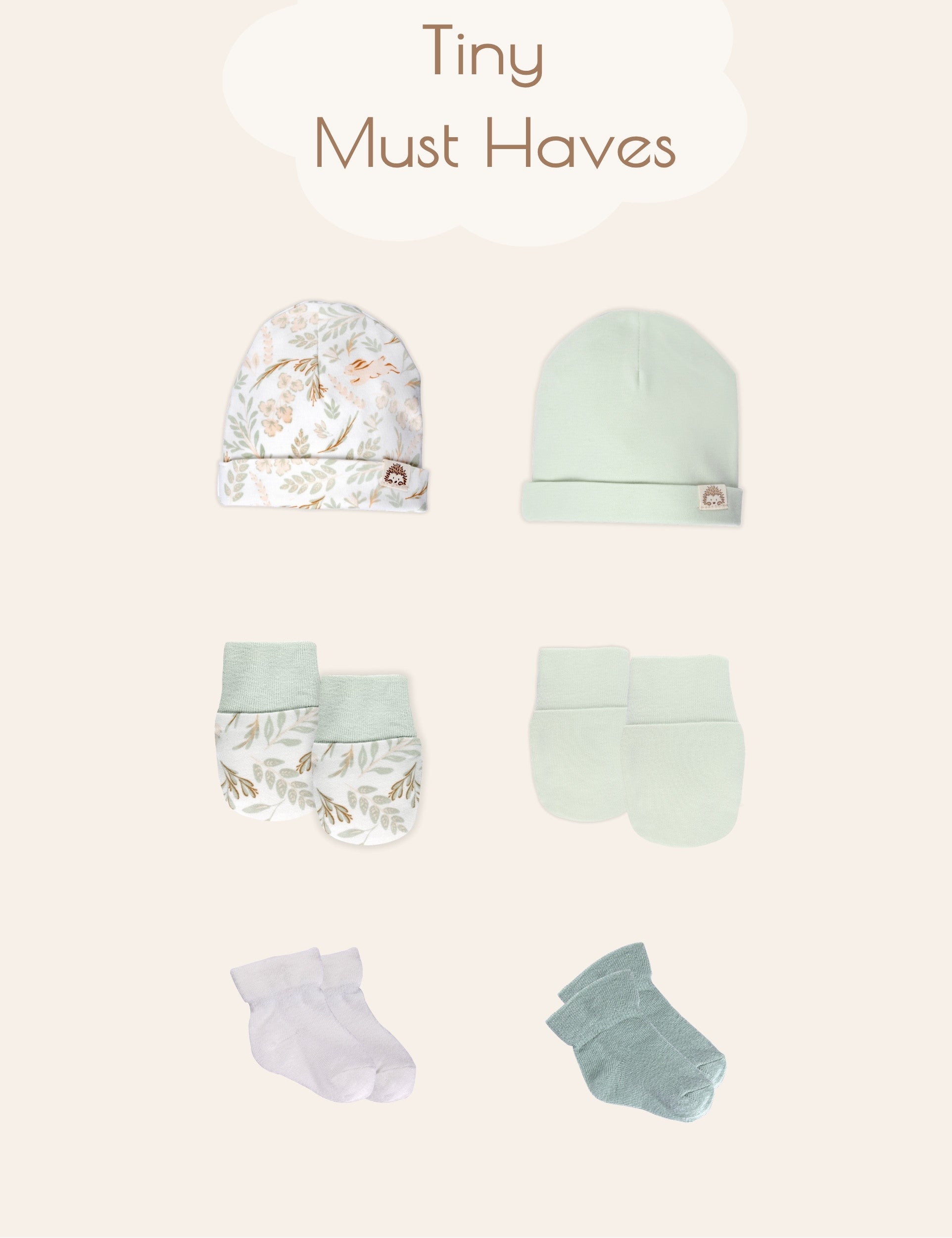 My Little Zone - 12-Pieces Baby Essentials Set - Woodland Collection (hat, mitten, footie)