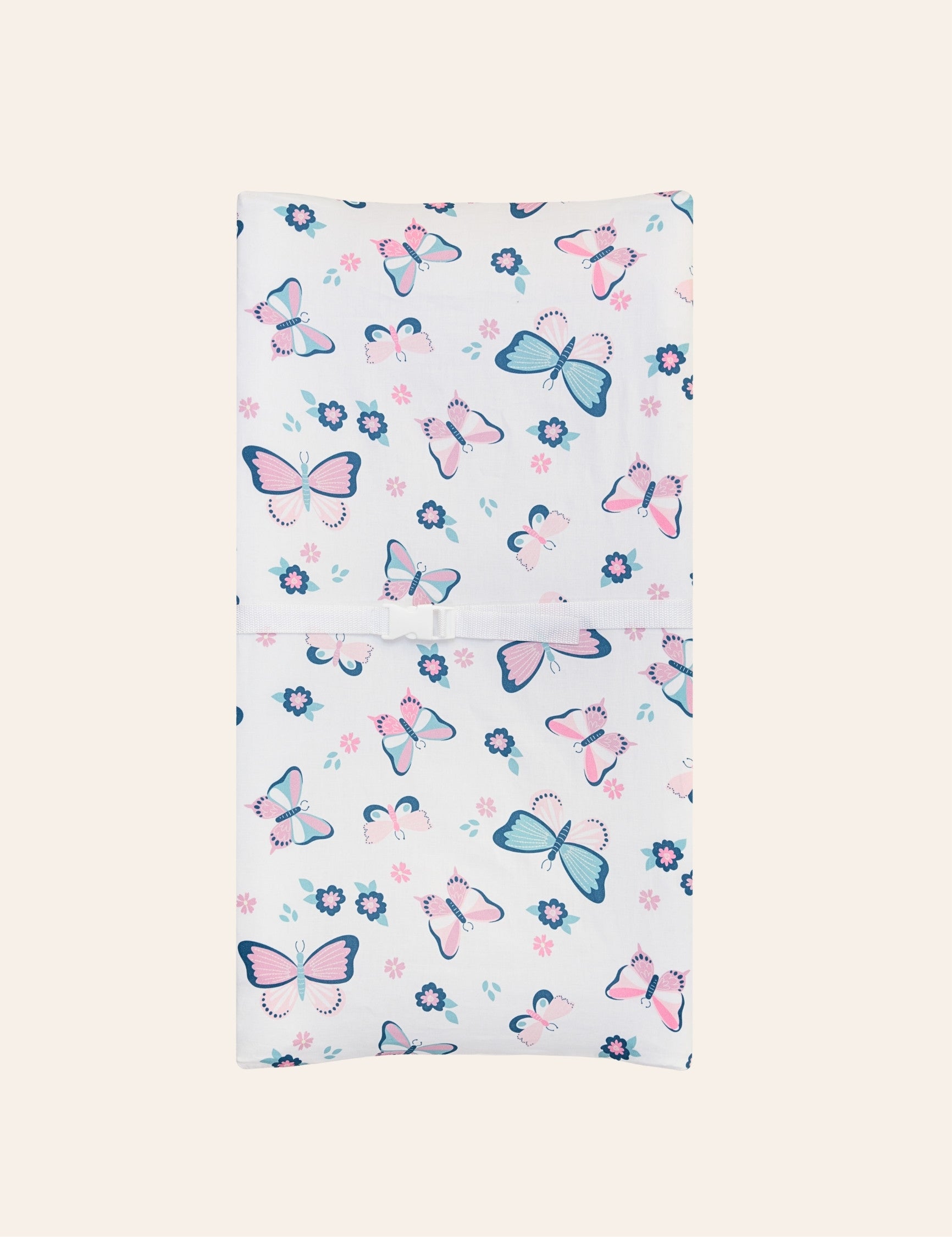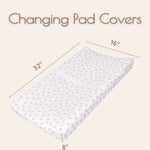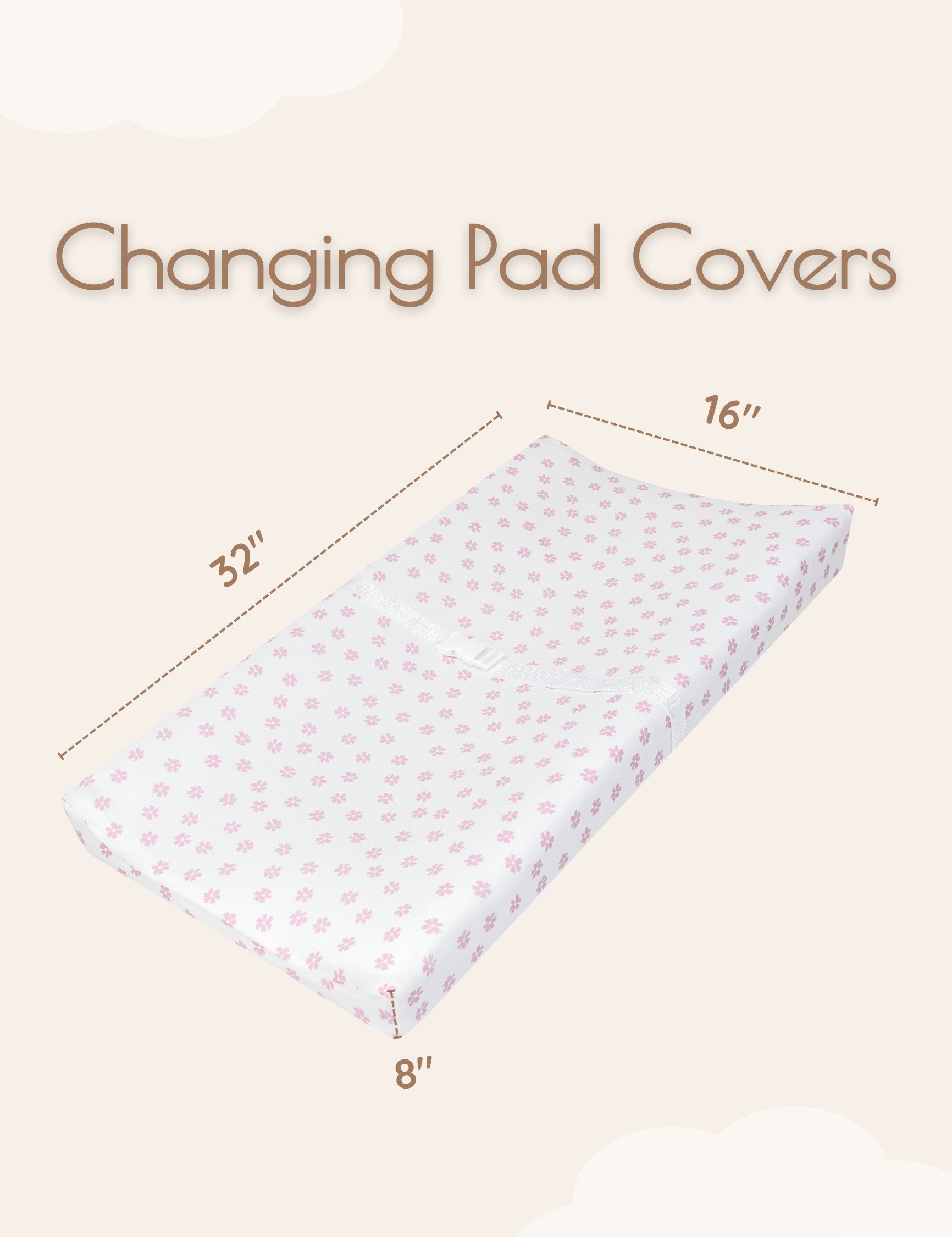 Size: Fits all standard changing tables, diaper changing pads and measure 32"x16" with 8" deep pocket. Each box includes 1 butterfly changing pad cover and 1 pink and white flower changing pad cover. Our diaper changing table pad cover has stretchable elastic and buckle holes for a secure fit.
