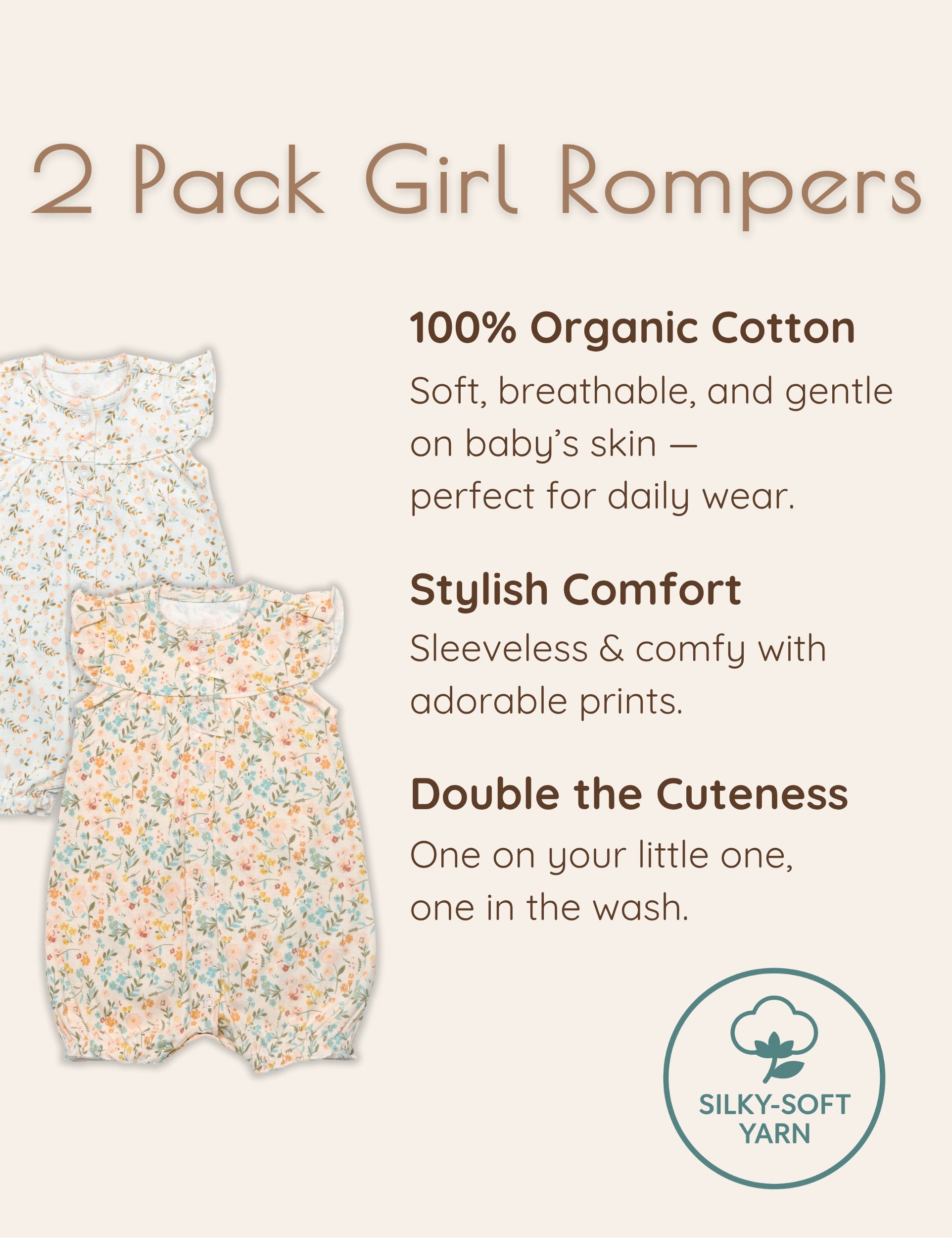 • Baby Romper Features: These 2-pack baby girl romper newborn are made from 100% organic cotton, offering a soft and breathable feel. This newborn girls baby clothes set comes with an adorable floral patterns. Available for newborns up to 18-24 months, these 100% organic cotton baby rompers are essentials for baby girls. These baby girl essentials are perfect baby girl summer clothes for your baby girl’s comfort!