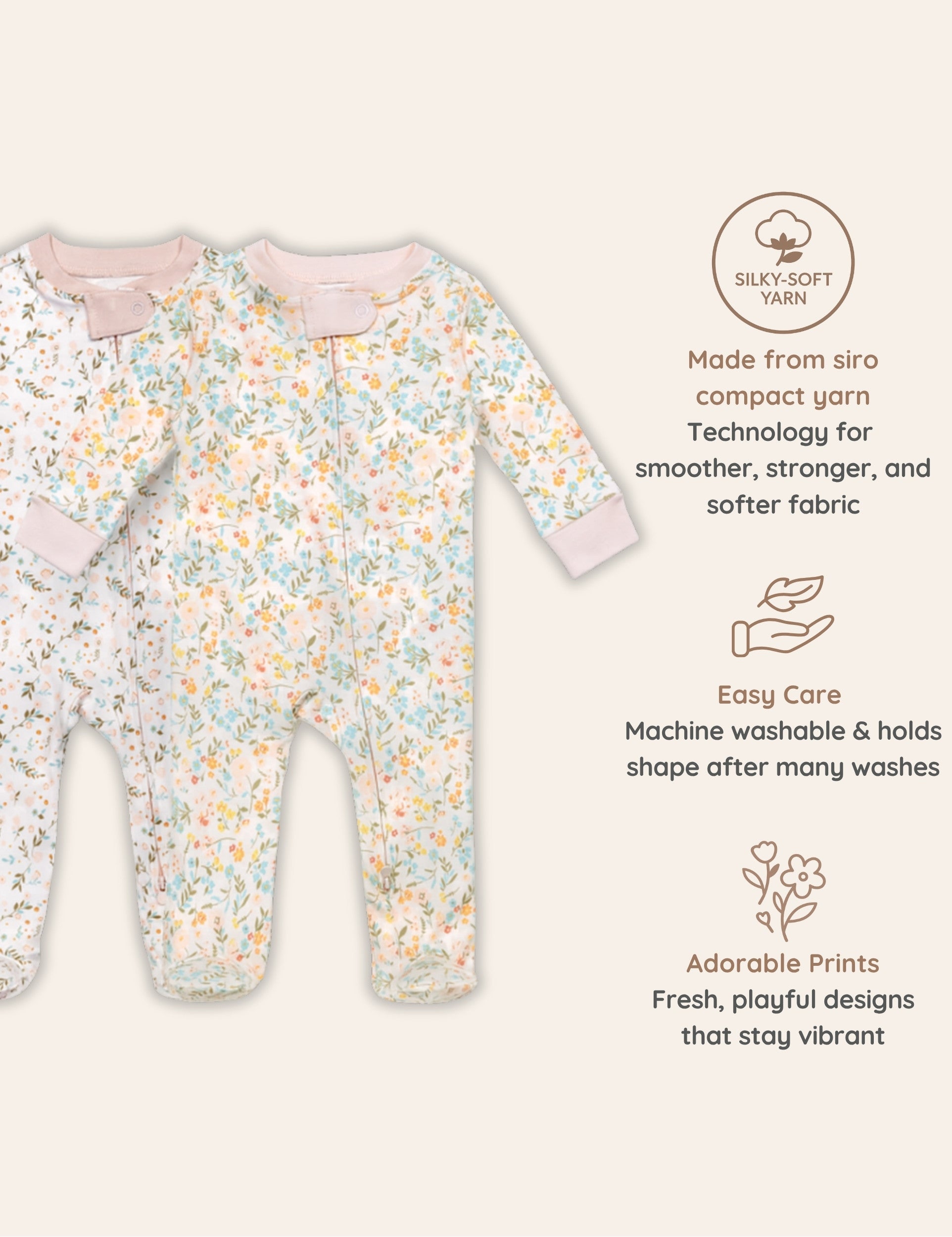 My Little Zone - 2-Pack Zipper Footies - Flower Collection