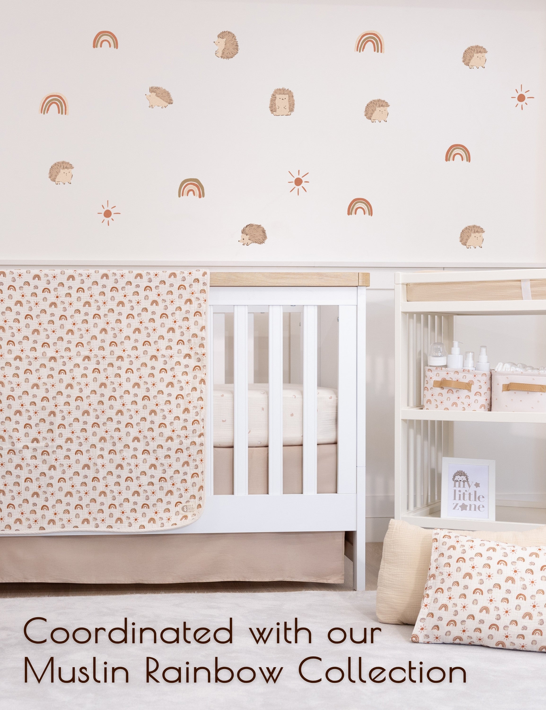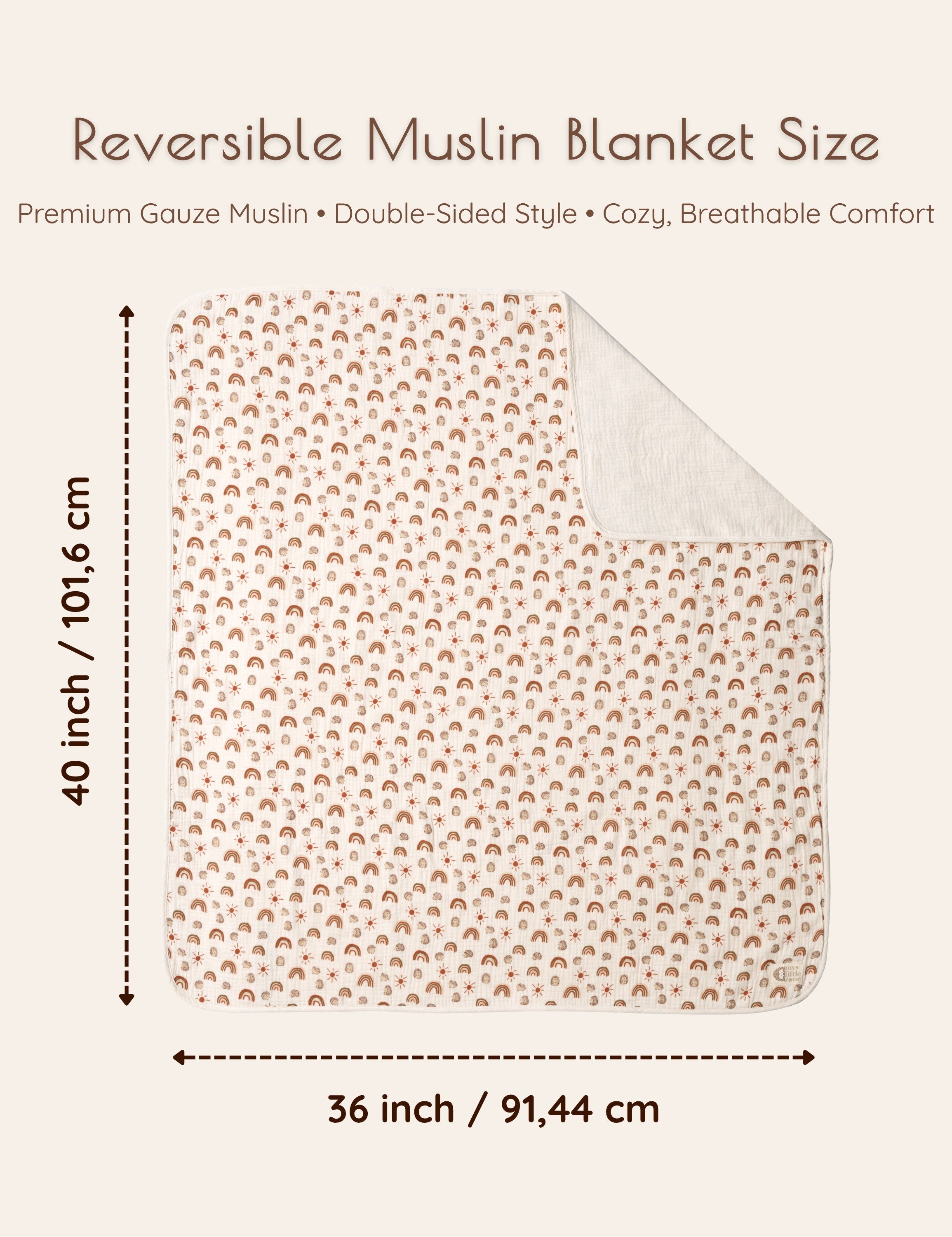 - Designed in France: This gender neutral baby blanket is thoughtfully designed in France to combine everyday comfort with timeless style. With a charming rainbow & hedgehod animal print on one side and a solid beige on the other, this baby blanket neutral offers two stylish looks in one. Perfect on its own or paired with My Little Zone's muslin nursing collection, this muslin baby blanket adds a touch of elegance to your baby essentials.