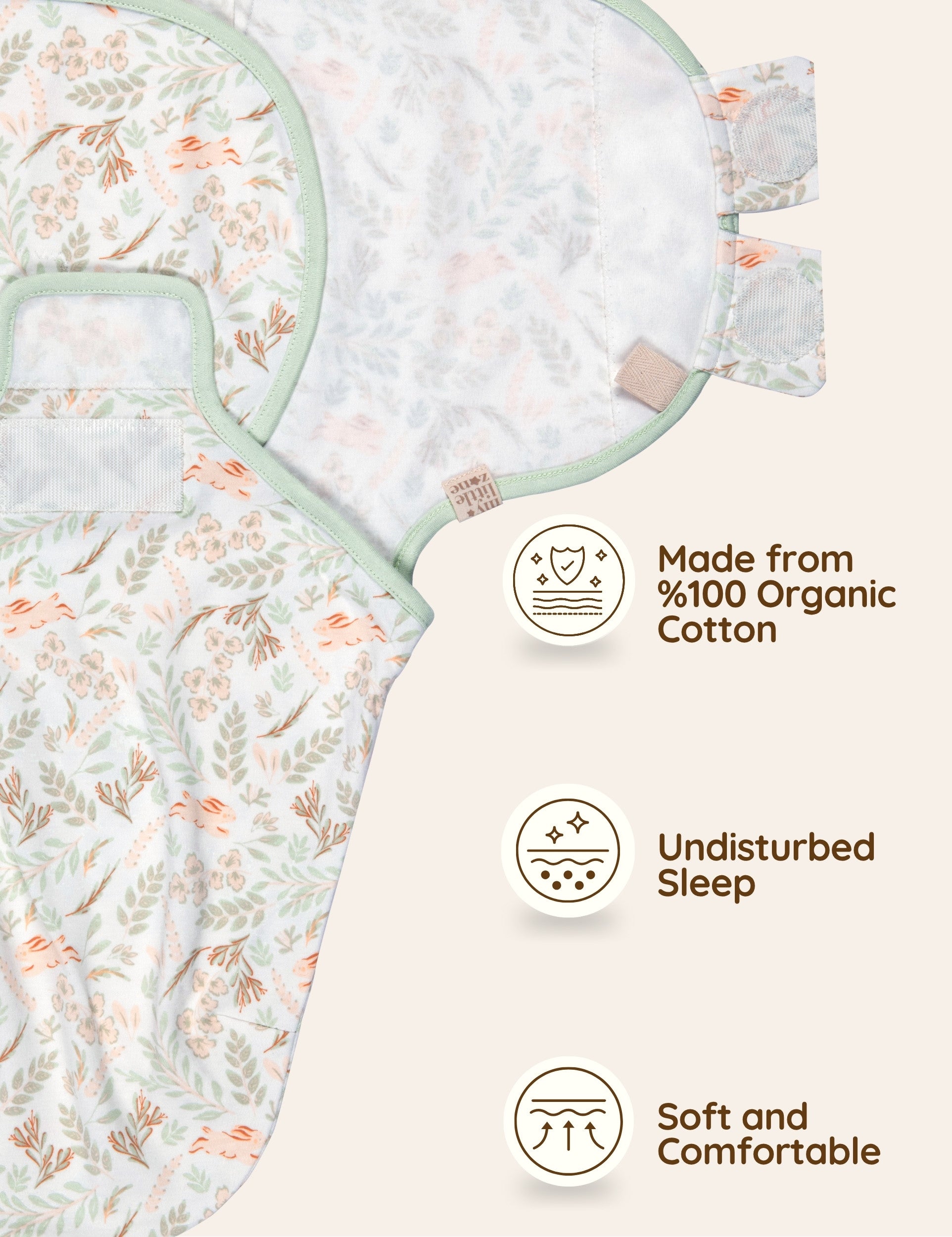 • Baby Swaddle Sleep Sacks Features: These baby wrap swaddles for newborns are made from GOTS-certified 100% organic cotton. Crafted to provide a safe and comforting space that mimics the feeling of a mother's womb, these sleepsack swaddles help soothe the startle reflex and encourage longer, more peaceful sleep. The lightweight and breathable organic cotton sleep sack fabric prevents overheating, making them ideal baby wrap swaddles for newborns.