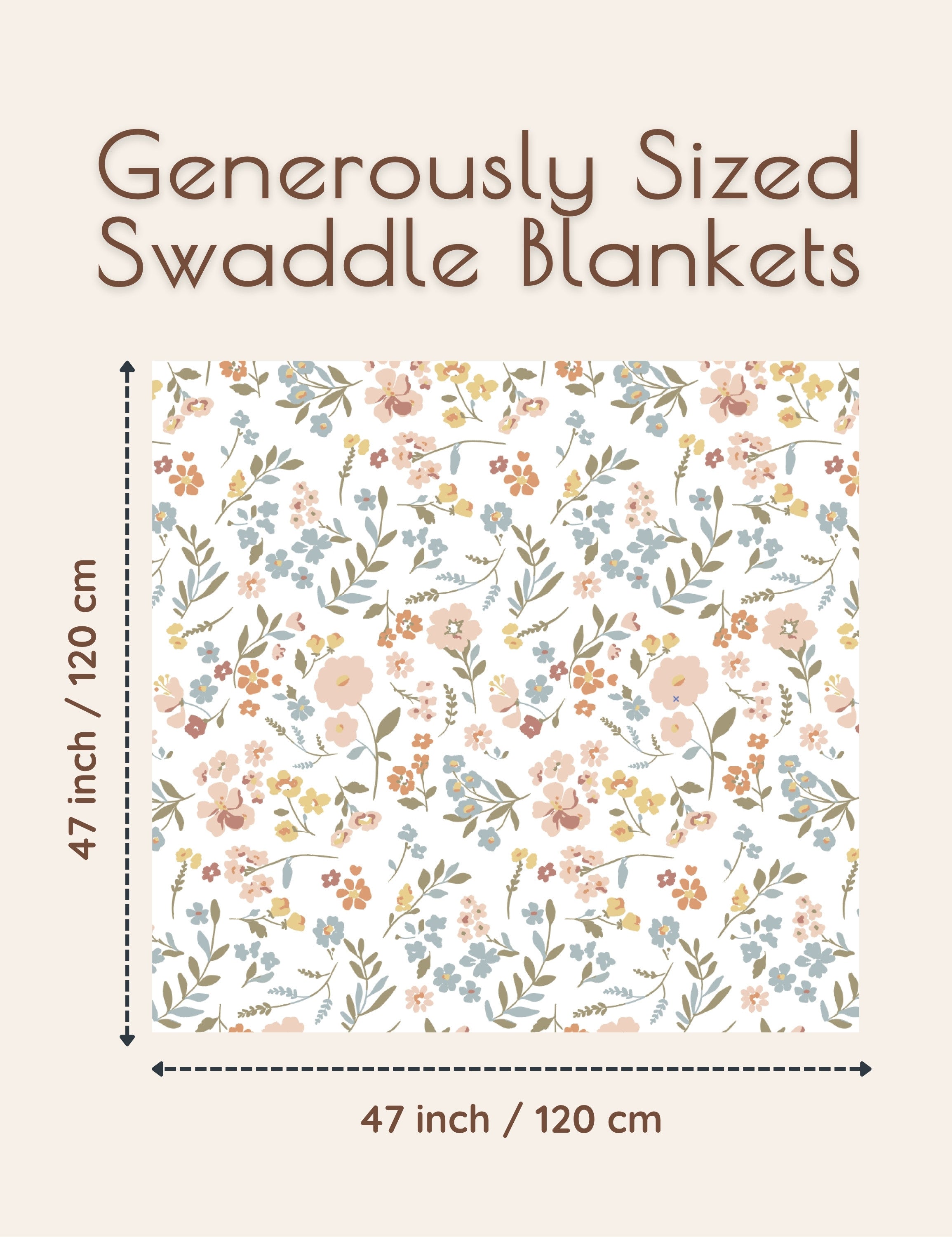 • Newborn Receiving Blankets' Size: Measuring 47" x 47", these receiving blankets baby girl are large enough to swaddling babies, offering a snug and secure wrap that helps soothe your baby by reducing startle reflexes, promoting longer, more peaceful sleep. The soft and stretchy cotton muslin blanket baby ensures breathable and comfortable swaddle for your little one.