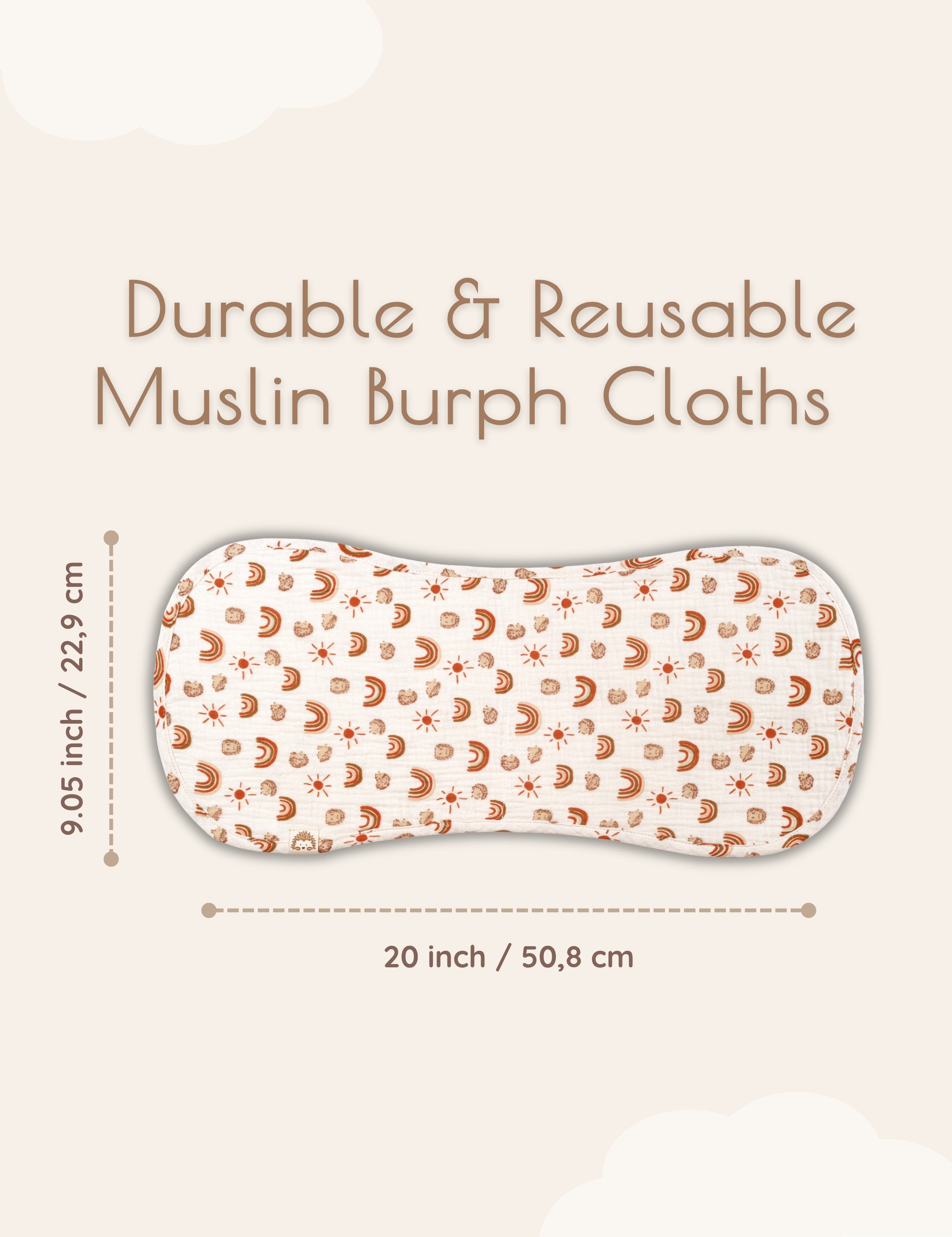 - Large and Absorbent Burp Cloths: Measuring 20"x10", these large muslin burp cloths offer maximum coverage and protection for parents from messes. The breathable and highly absorbent material of neutral burping cloths for babies quickly soaks up spit-ups and spills, keeping you and your baby clean and dry.