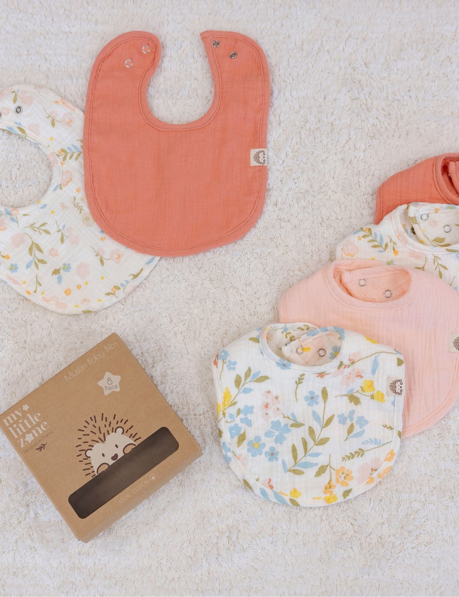 My Little Zone - 8-Piece Muslin Baby Bibs - Flower Collection