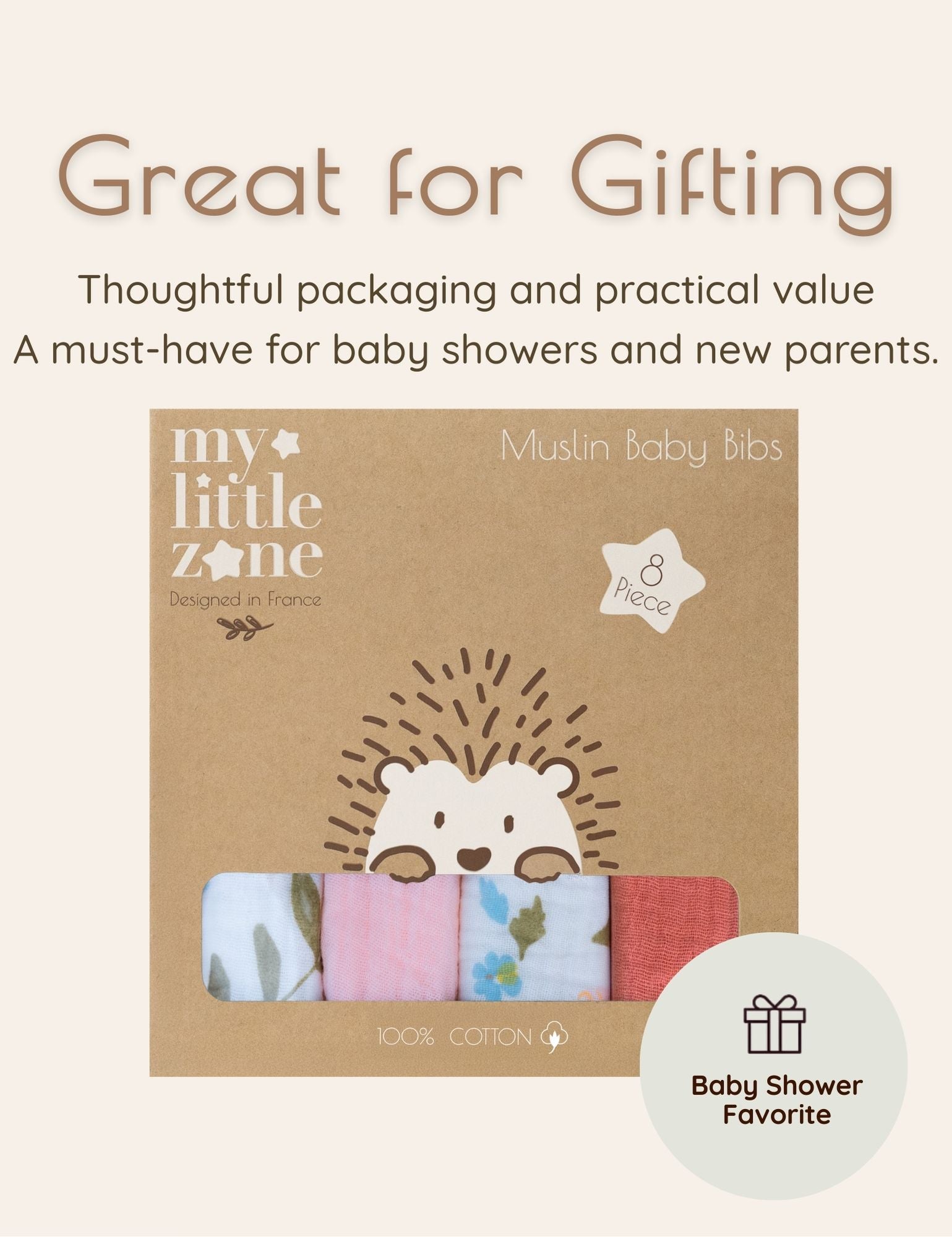• Gift-Ready Bibs for Baby Girl: Made from high-quality muslin cotton, featuring adorable French-designed patterns and colors, and beautifully packaged, these baby bandana bibs make the perfect gift for new parents and their baby girls. They'll think of you every time they use these stylish baby bibs for drooling and teething, and eating.