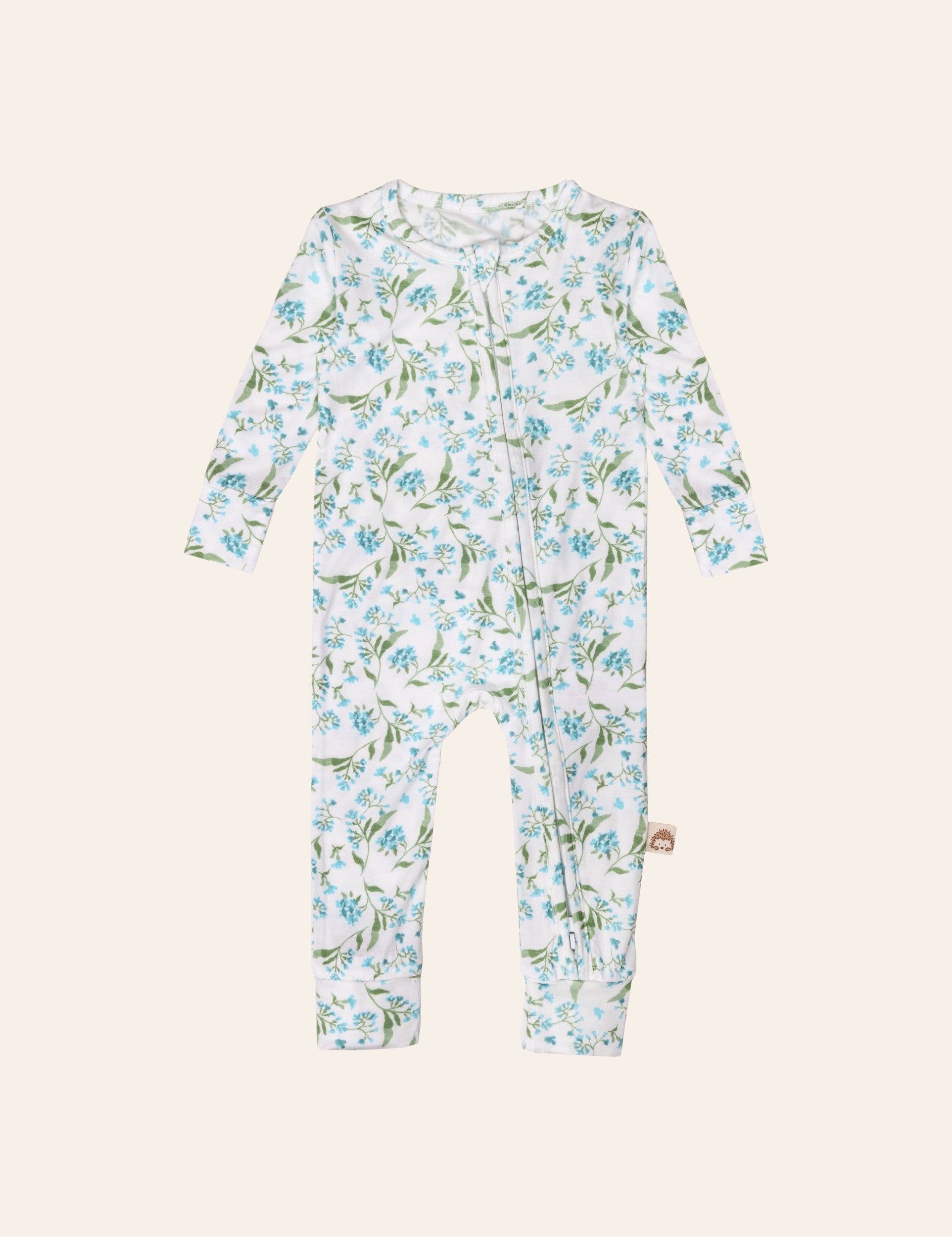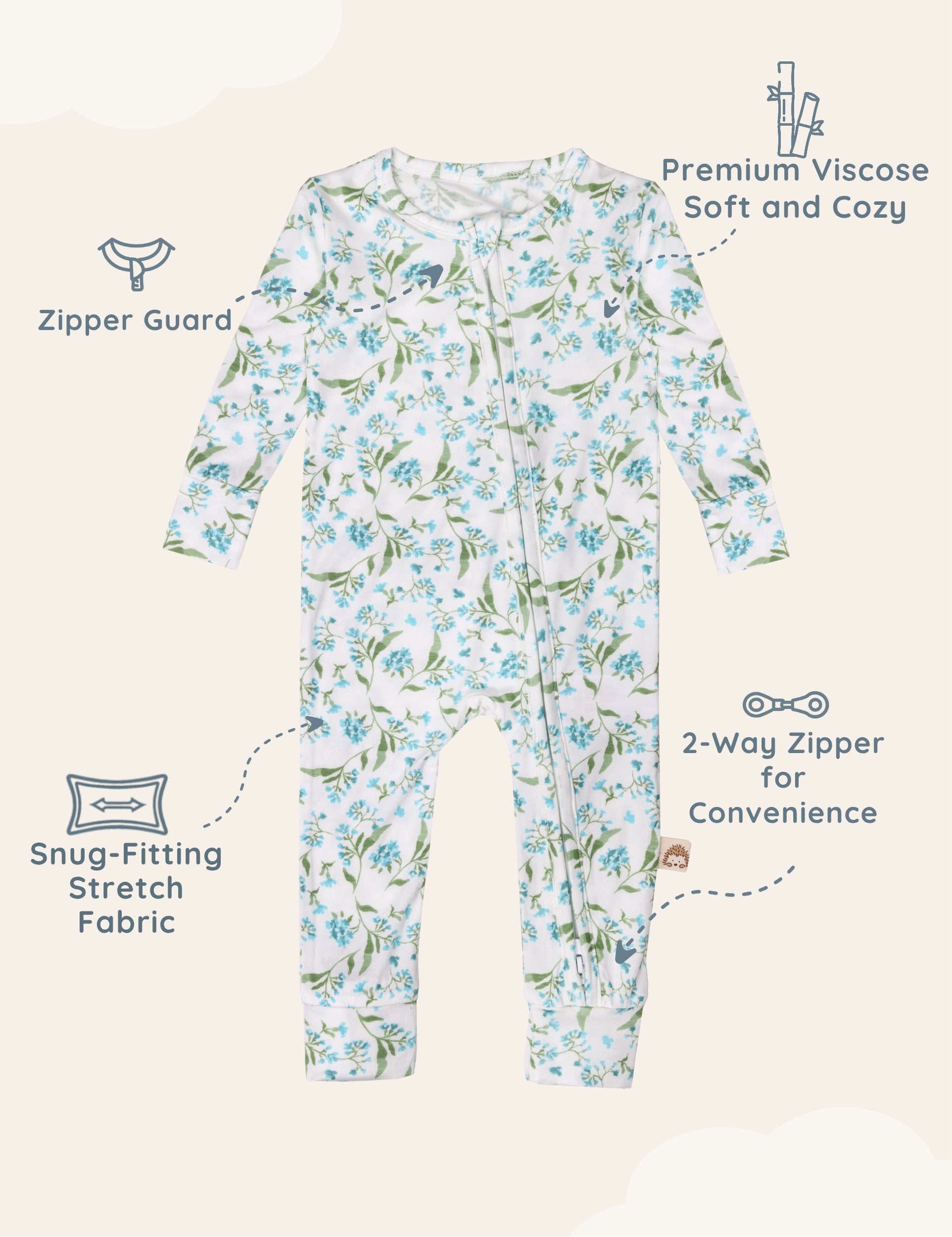 My Little Zone - Baby Footless Zip Front Pajamas - Botanical Collection - Print Blue - 12-18 Months