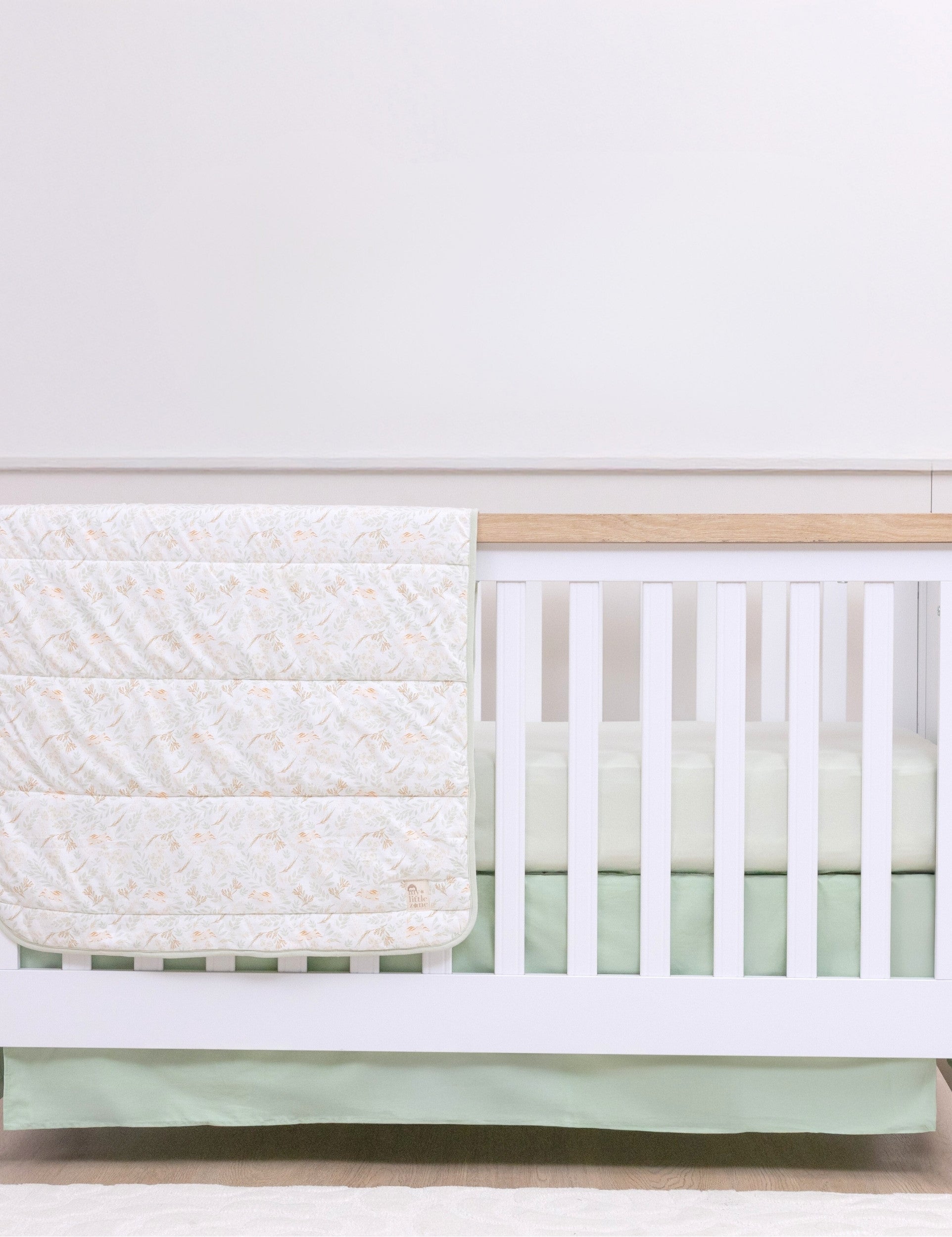- Designed in France: This crib bed skirt is designed in France to bring an elegant and soft touch to your woodland nursery decor. Our crib dust ruffle helps to prevent dust buildup beneath it, keeping your baby nursery clean and beautifully styled. The cotton bed skirt perfectly complements My Little Zone Woodland Collection items including crib accessories boy girl such as organic cotton woodland crib sheets, cotton crib blankets, green changing pad covers and more.