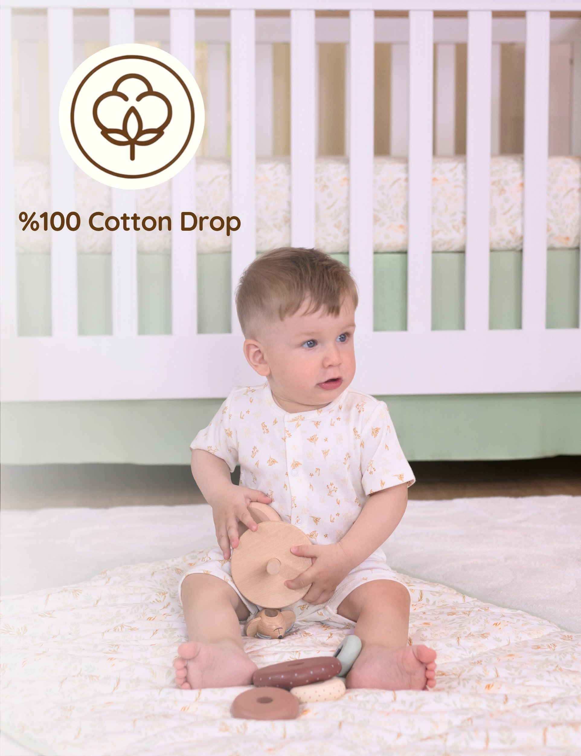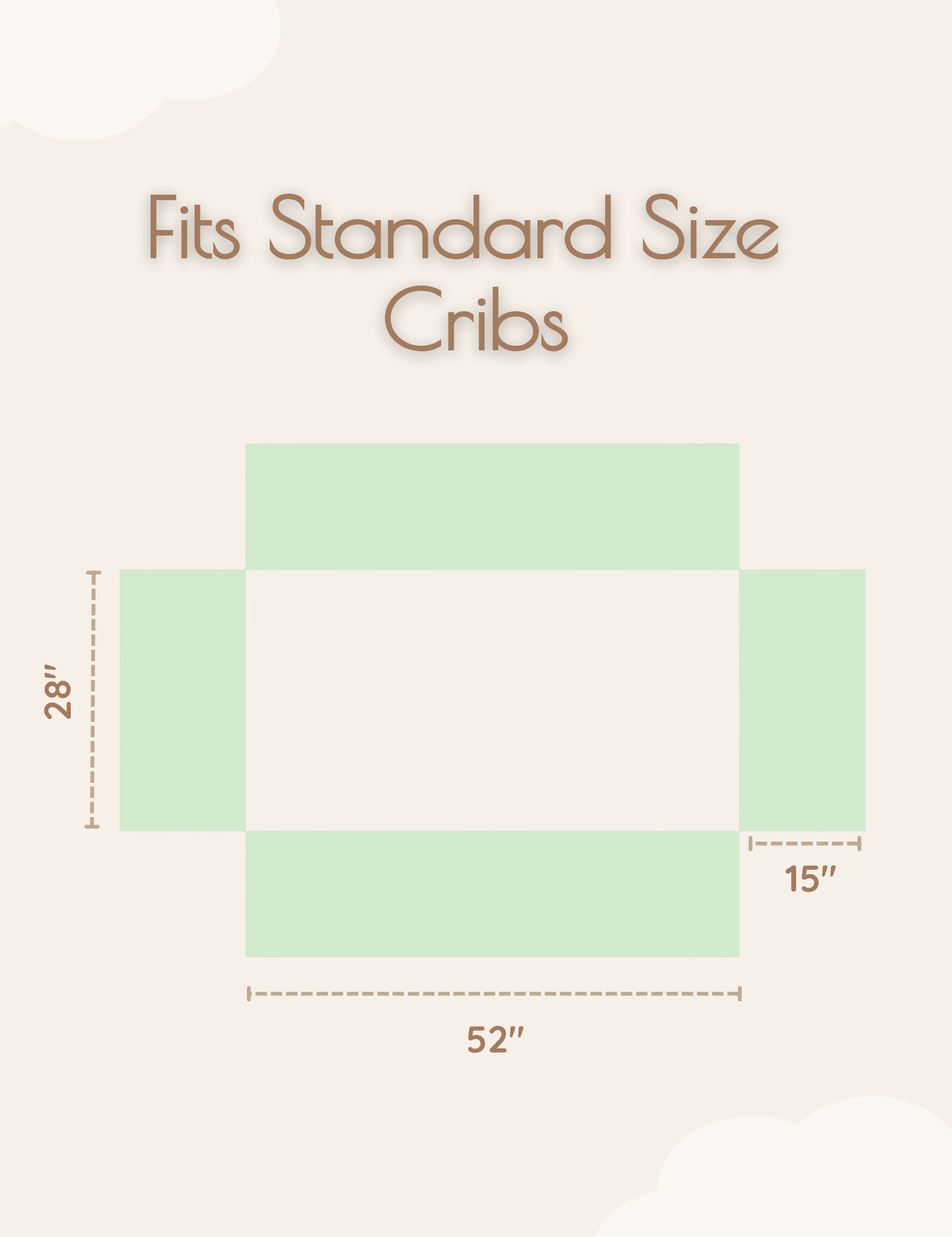 - Crib Bed Skirt Material: This baby crib skirt boy girl is made from 100% cotton drop and %100 polyester platform. Certified by OEKO TEX Standard 100, our 52"x28"x15" neutral bedskirt meets high safety and quality standards, and this green crib skirt adds both comfort and functionality to your woodland nursery decor, creating a cozy and stress-free space.