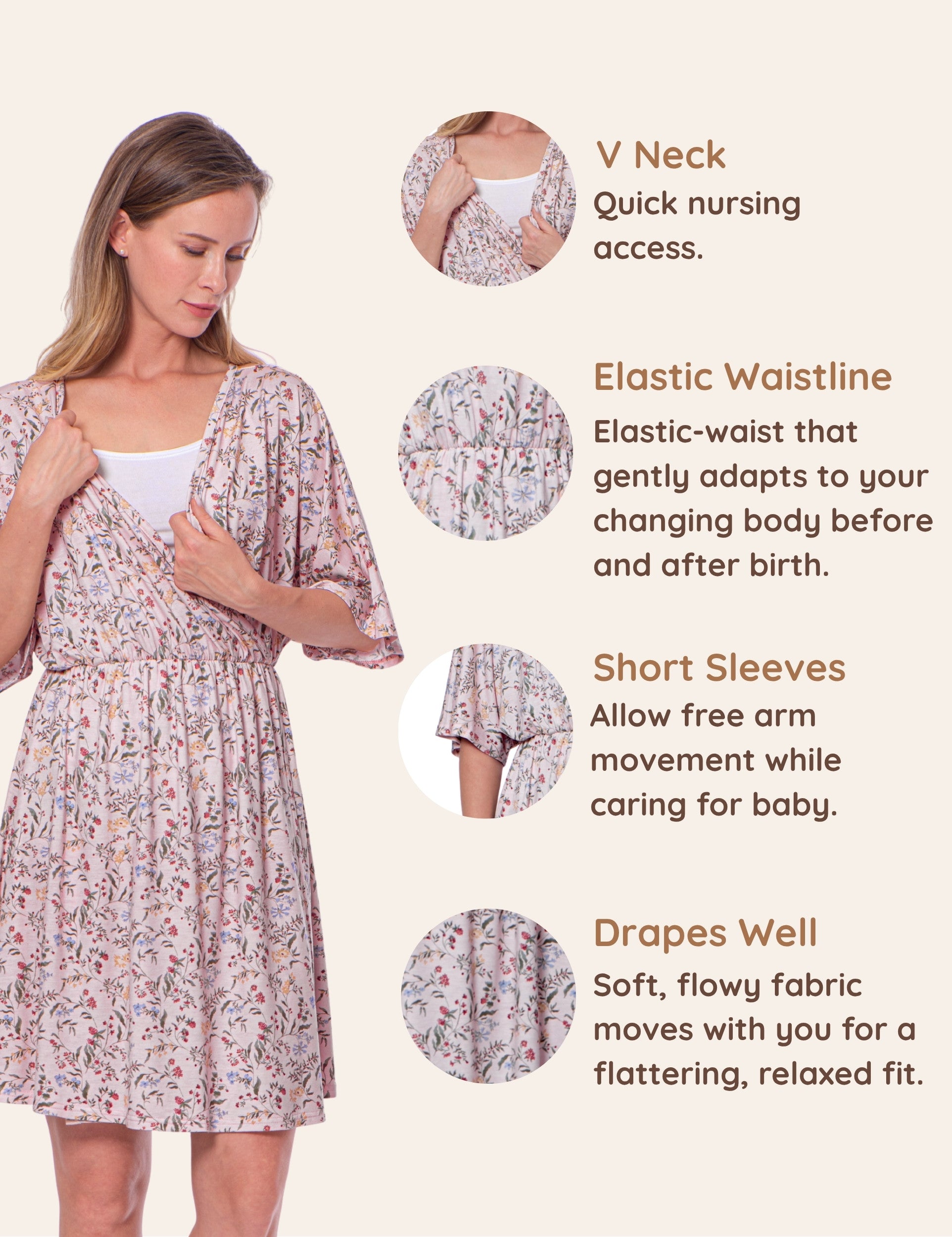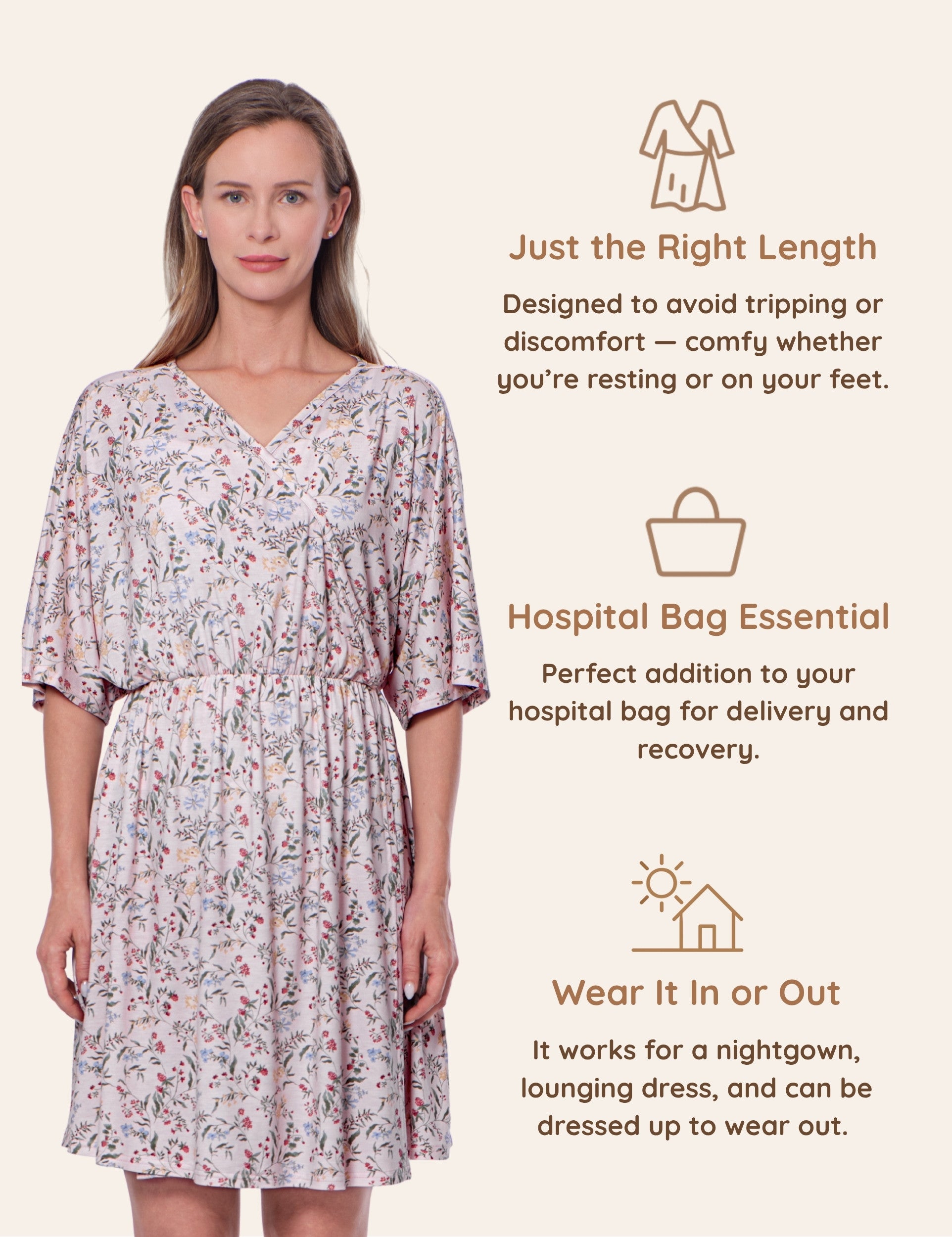 • Thoughtful Gift for Pregnant Women and Moms: This botanical pink maternity dress makes a practical and stylish gift for pregnant women — from postpartum recovery to everyday relaxation. Are you looking for nursing friendly dresses for women? Our nursing nightgown is a versatile choice — great as nursing dresses breastfeeding moms love, or as, a labor and delivery gown. Our bamboo nursing nightgown comes in a gift-ready package, making it a beautiful and effortless present for moms.