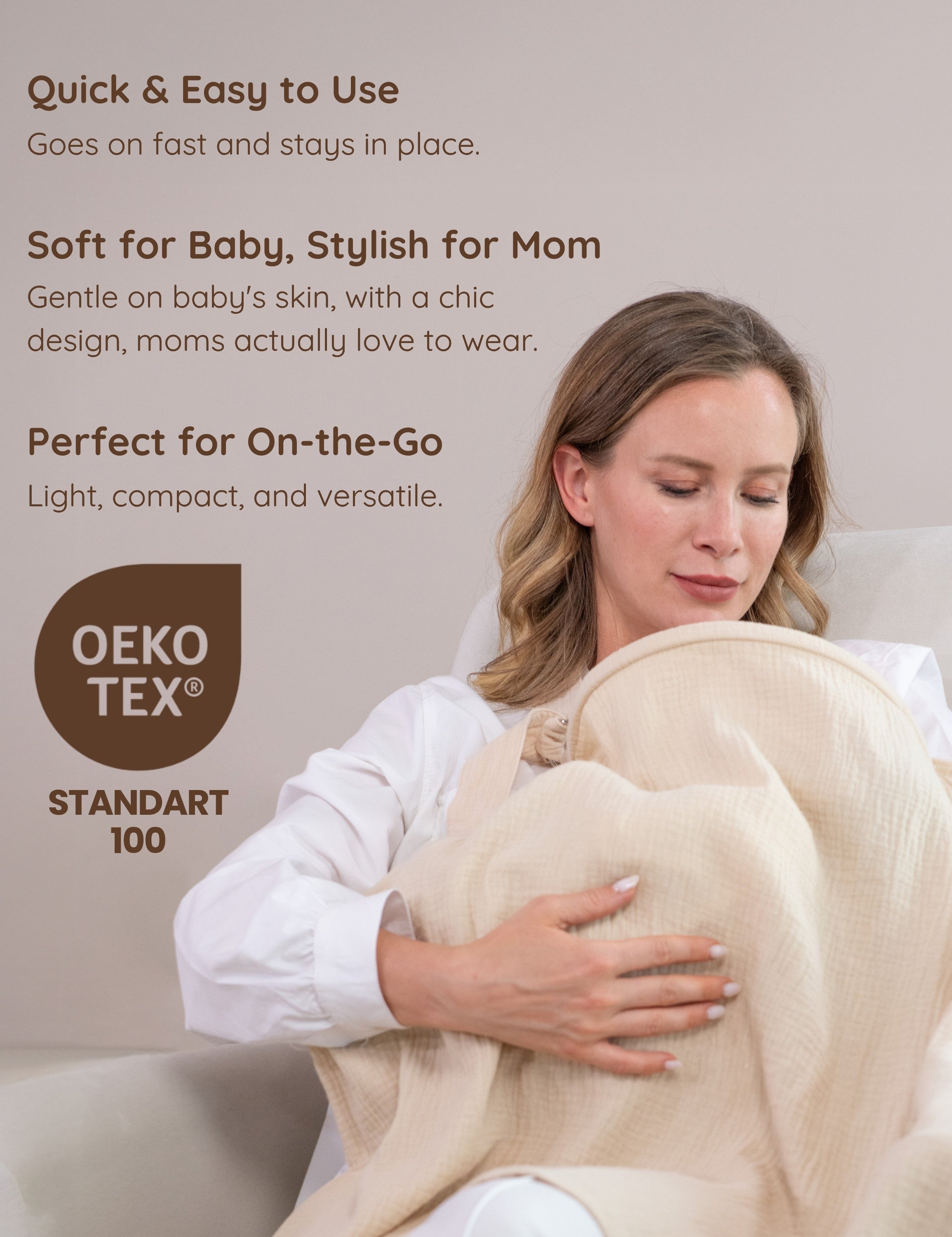 - Chic Breastfeeding Cover: This nursing cover up for breastfeeding is designed in France to bring together comfort and style for mothers during daily life. Made from soft muslin in a neutral beige, this baby breastfeeding cover for nursing pairs beautifully with My Little Zone's muslin nursing collection.