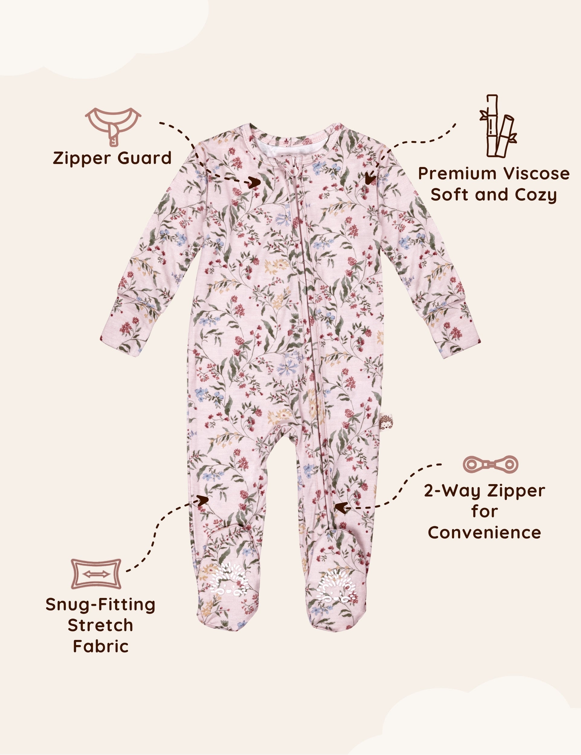 My Little Zone - Zipper Footie - Botanical Collection - Print Pink