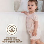 Material: 100% Organic Cotton. OEKO-TEX and GOTS-certified, this pink baby girl romper is made from breathable organic cotton that keeps your little one comfy throughout the day. This organic baby girl bubble romper is perfect for everyday wear, play, outings, and warm weather.