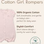 - Short-sleeve baby girl romper design for easy movement