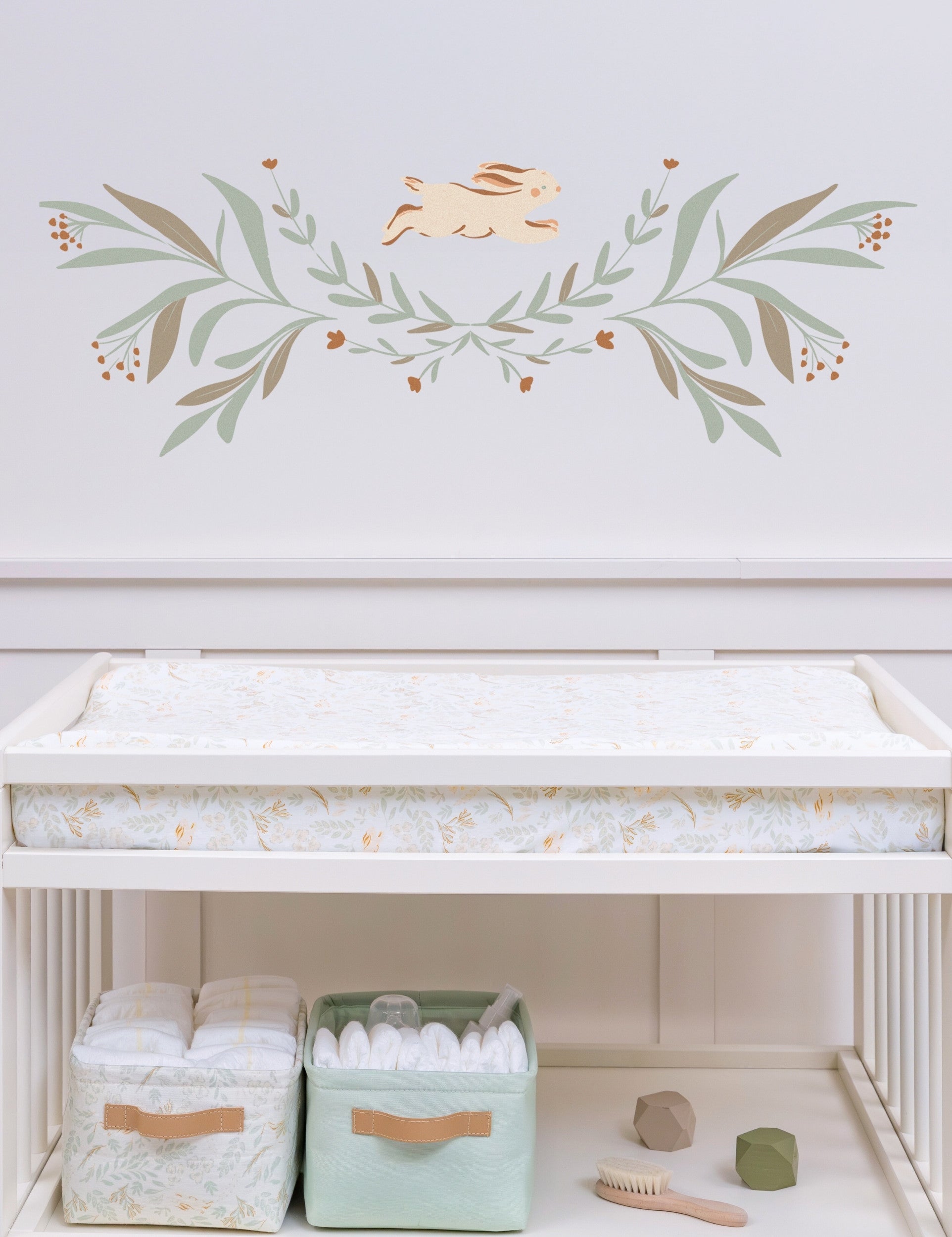 Coordinated Nursery Look: These woodland wall decals pair perfectly with My Little Zone’s Woodland Collection essentials, including woodland crib sheets, blankets, storage bins, and crib skirts, creating a cohesive, charming nursery.
